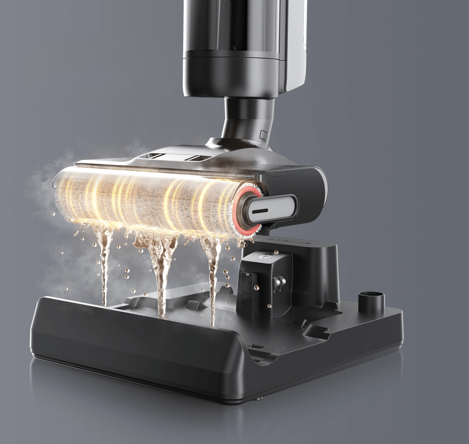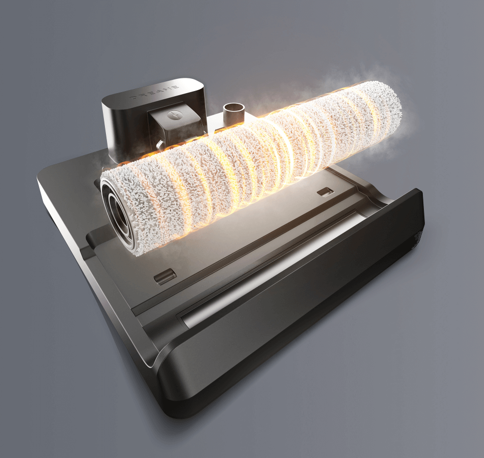 Non dovrai più avere a che fare con spazzole sporche e oleose dopo aver pulito i pavimenti. Premendo un pulsante, questo aspirapolvere intelligente risciacqua e disinfetta la spazzola con acqua calda a 60 °C* per essere sempre pronto alla prossima missione di pulizia.