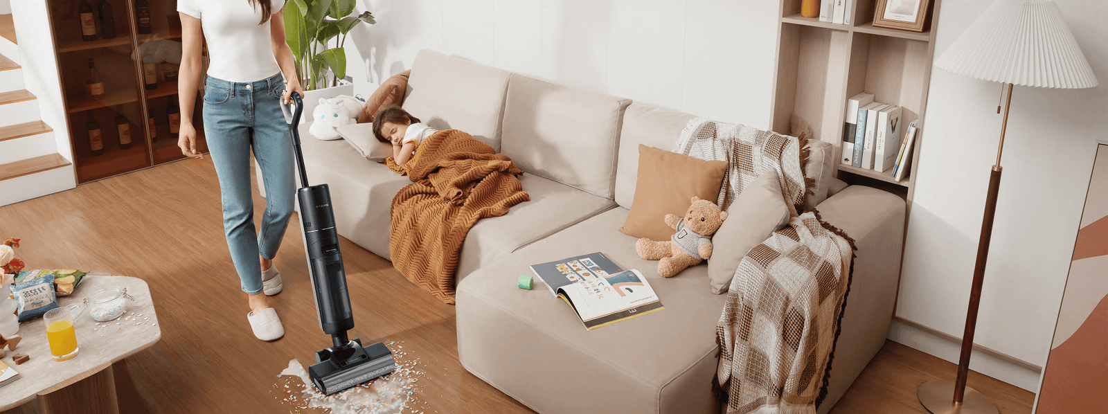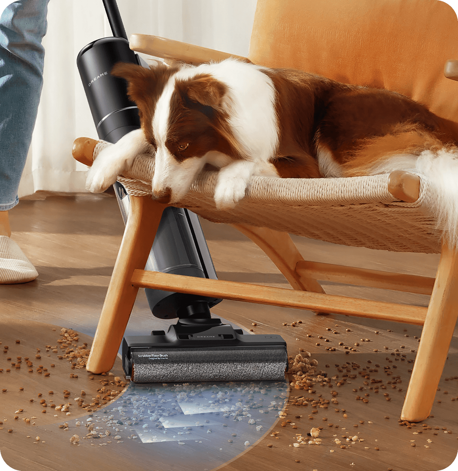Pulisci accuratamente senza disturbare animali domestici, bambini o gli altri membri della famiglia. Un motore brushless, un canale dell'aria ottimizzato per il rumore e una spazzola a rullo morbida contribuiscono a una pulizia senza interruzioni.