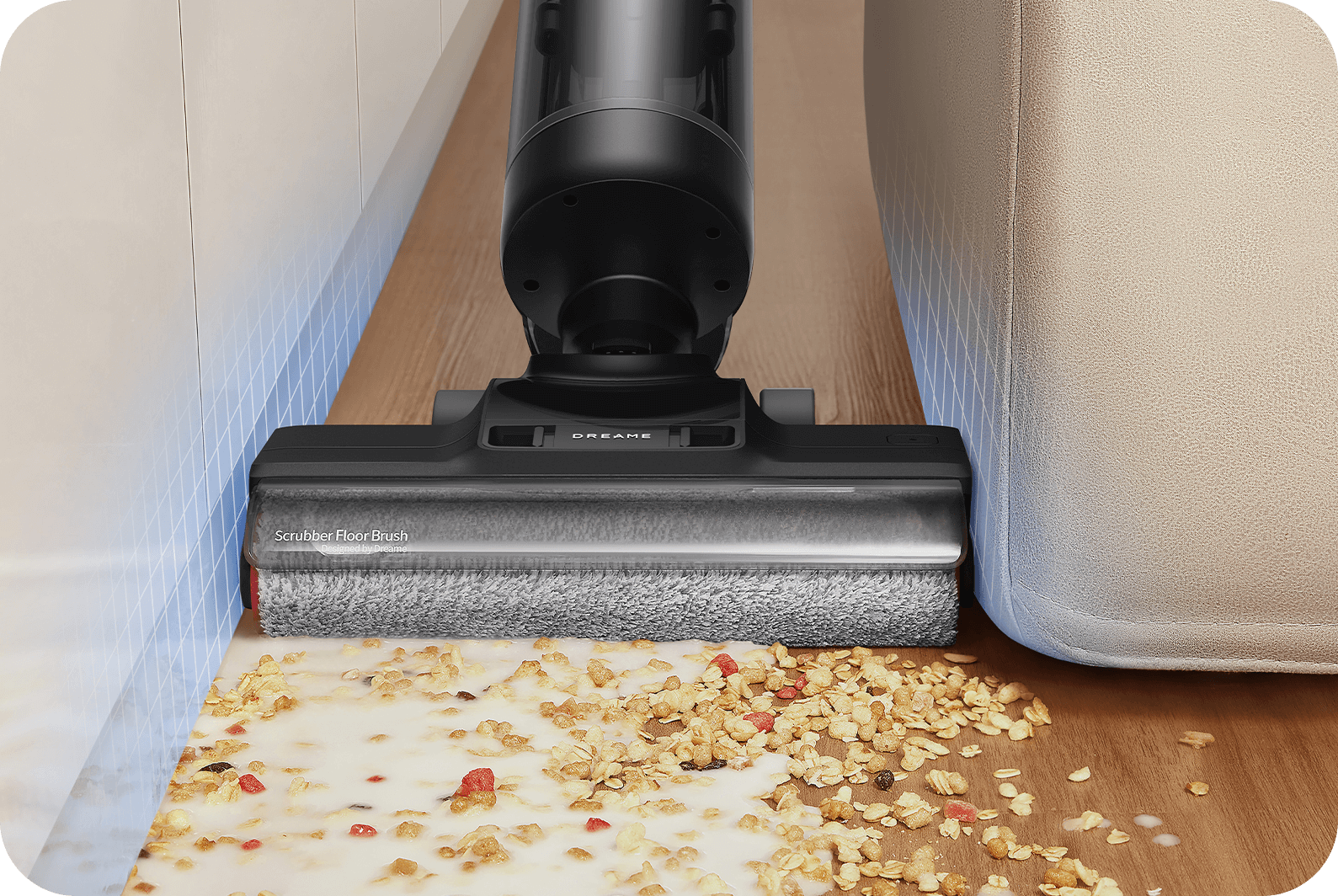 La spazzola pulisce i bordi sui due lati e si adatta perfettamente a battiscopa e angoli, per una pulizia perfetta di tutto il pavimento.