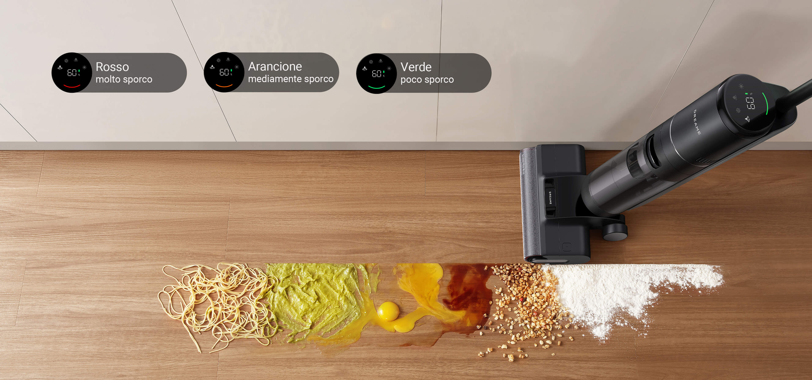 Grazie a un sensore avanzato, H12 Pro Ultra regola l'aspirazione in base allo sporco rilevato, ottimizzando l'efficienza energetica e la potenza di pulizia.