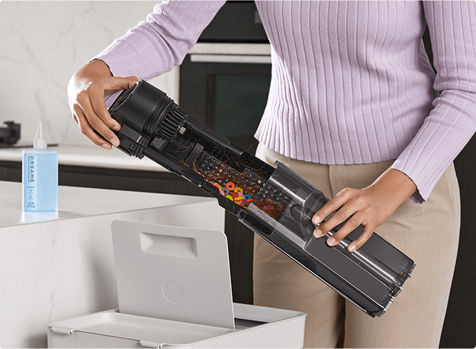 L'arma segreta di H14 per una pulizia perfetta in posizione distesa è il Liquid Separation Motor™, che impedisce il riflusso dell'acqua usata, pur essendo in grado di garantire un'aspirazione di 18.000 Pa* per prestazioni di pulizia ottimali.