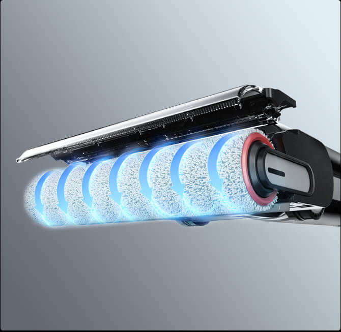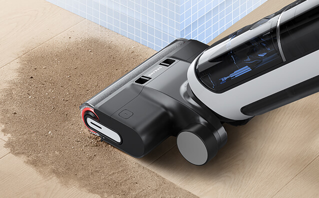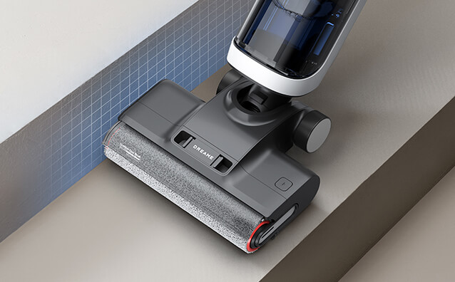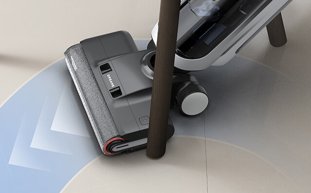 La spazzola di H14 pulisce i bordi su due lati, anche nelle aree difficili da raggiungere, per rimuovere rapidamente lo sporco negli angoli e lungo i battiscopa.