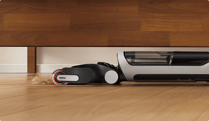 ¹180°, 14 cm, 9,8 cm: tutto il corpo dell'aspirapolvere può entrare in spazi alti 14 cm, mentre la spazzola può essere inserita in fessure alte 9,8 cm, in base ai dati dei test nel laboratorio Dreame.