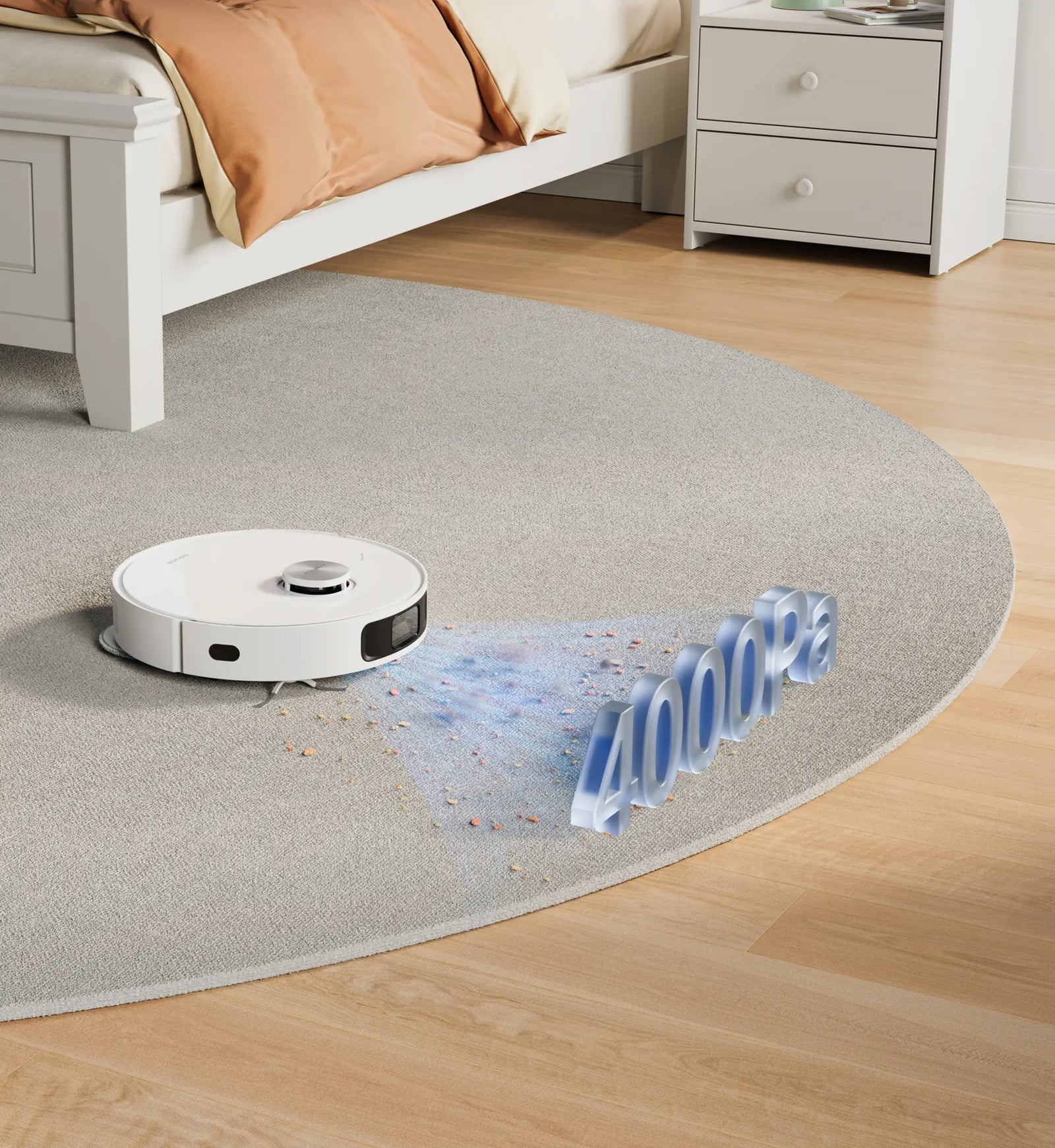 La potente aspirazione da 4.000 Pa e la spazzola in gomma senza setole consentono di rimuovere peli, sporco, polvere e residui da tappeti, moquette, pavimenti duri, angoli e fessure. La spazzola a rullo rimuove la polvere depositata in profondità in tappeti e moquette e presenta un design che riduce al minimo i grovigli di capelli per garantire una pulizia accurata della casa.