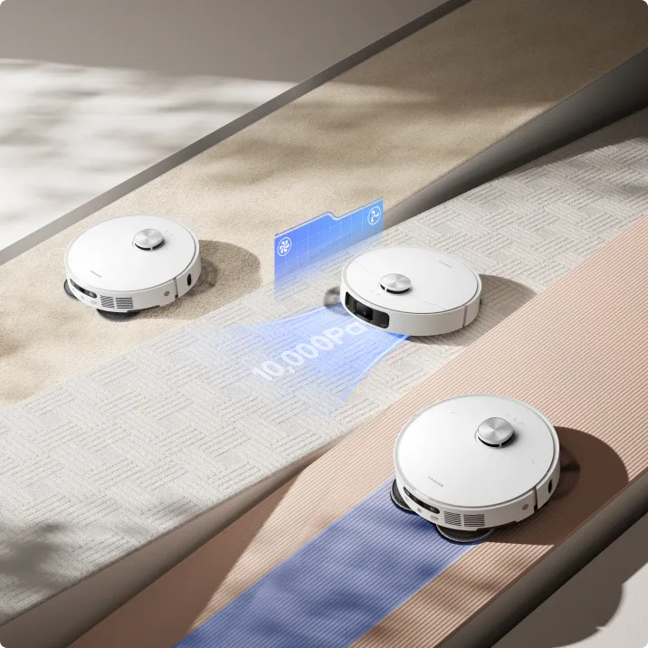 L10s Ultra Gen 2 offre diverse modalità di pulizia di tappeti e moquette: sollevamento dei moci, pulizia intensiva con aspirazione potenziata, aspirazione e lavaggio, rilevamento automatico e pulizia prioritaria di tappeti e moquette. Scegli il metodo migliore per ciascuna superficie della casa coperta da tappeti o moquette.