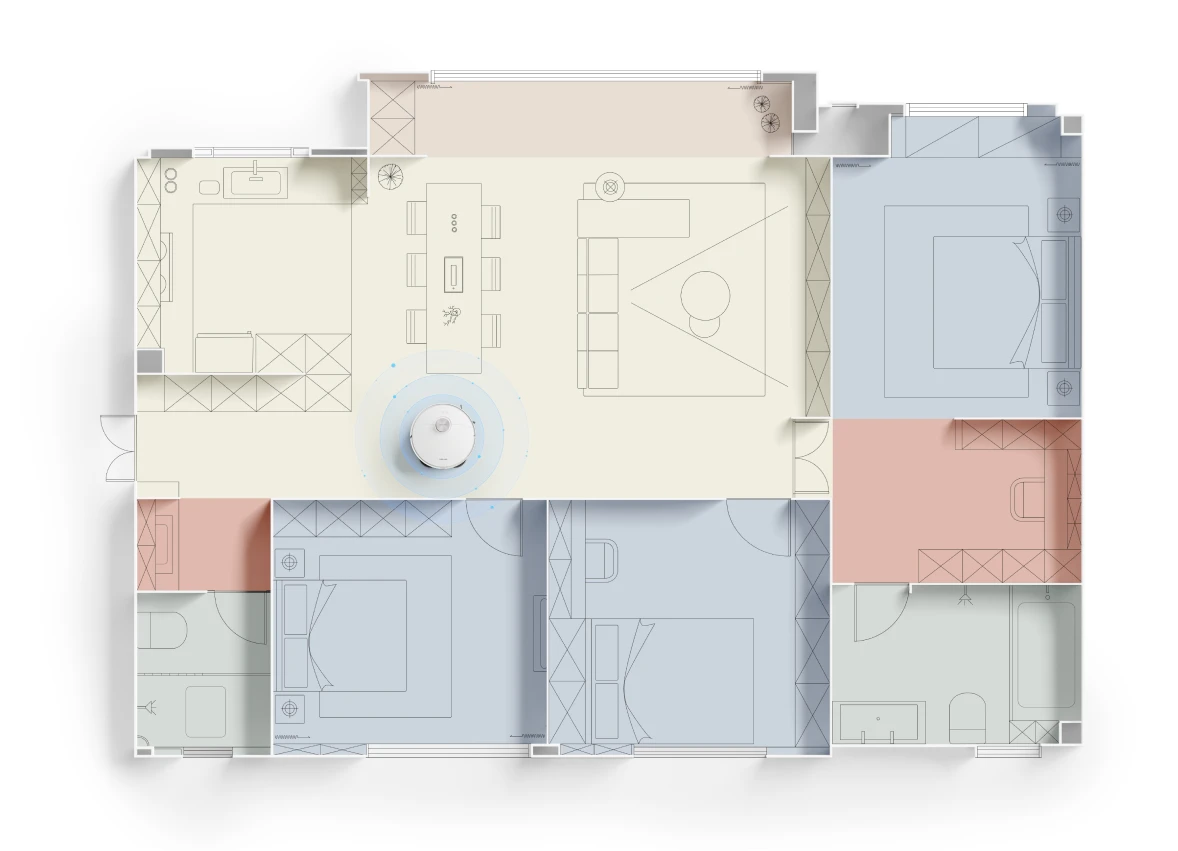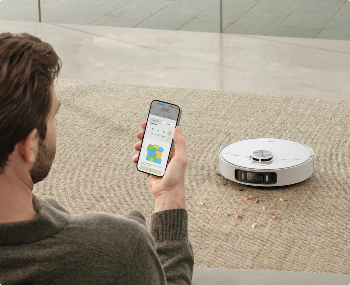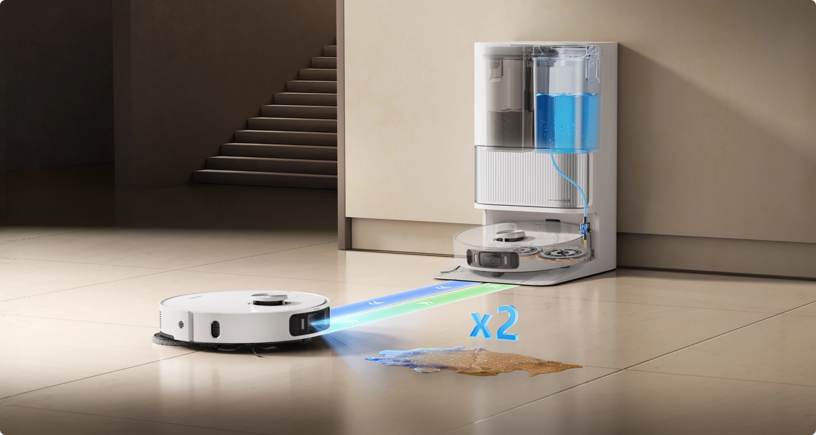 Con l'azione dell'intelligenza artificiale e la luce 3D strutturata, il robot aspirapolvere si muove in modo flessibile in tutta la casa, adattandosi all'ambiente domestico ed evitando molteplici ostacoli come scarpe, giocattoli e altro ancora, per navigare senza urti.