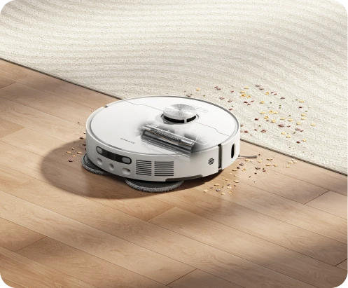 L'aspirazione potenziata pulisce i tappeti a pelo corto mantenendoli asciutti. I panni per mocio si sollevano automaticamente fino a 10,5 mm*, per evitare d'inumidire i tappeti. Scegli la modalità Aspirazione potenziata nell'app Dreamehome per raccogliere i residui rimasti nei tappeti e pulirli in modo efficace con risultati impeccabili.