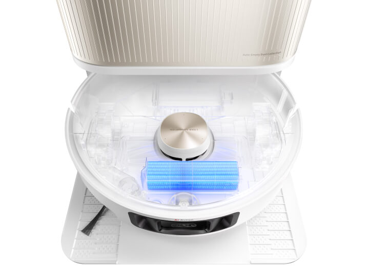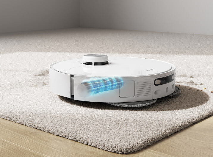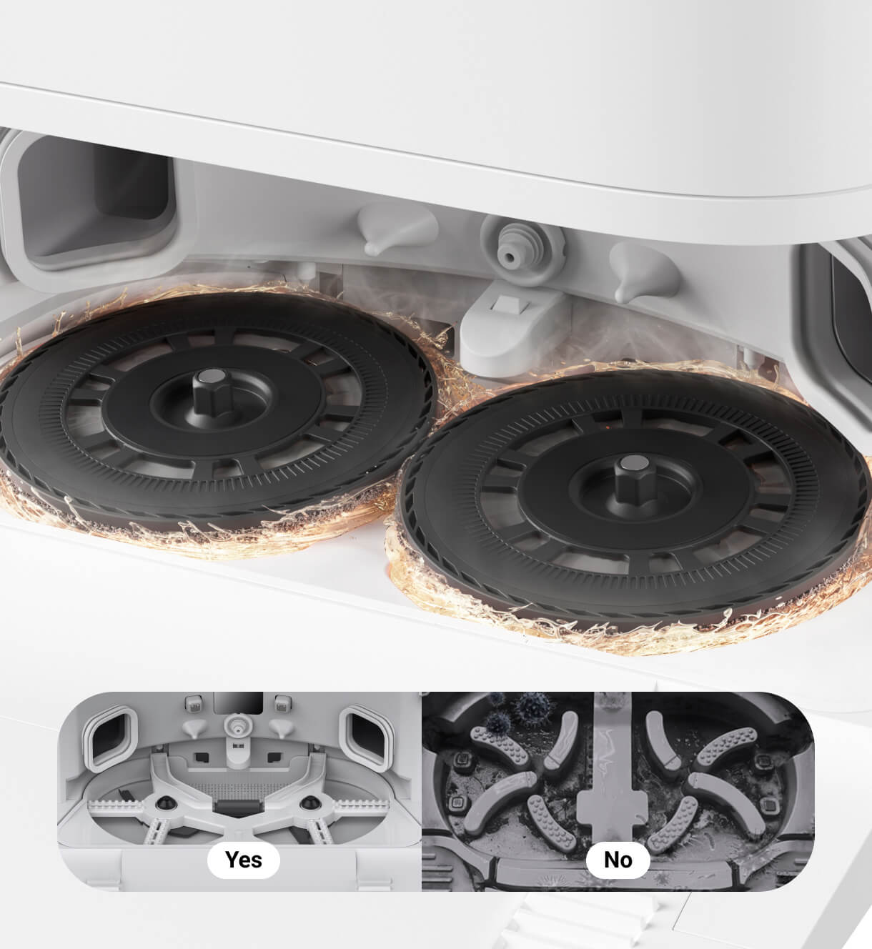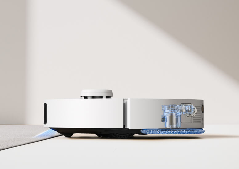 La spazzola laterale di L40 Ultra si solleva di oltre 10 mm*. Moci e spazzola principale sono gestiti per separare le attività di pulizia a secco e con acqua. Il robot aspirapolvere si sposta facilmente tra tappeti/moquette e pavimenti duri, senza il rischio di diffondere la sporcizia passando da un metodo di pulizia all'altro.