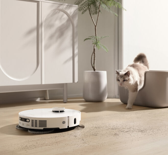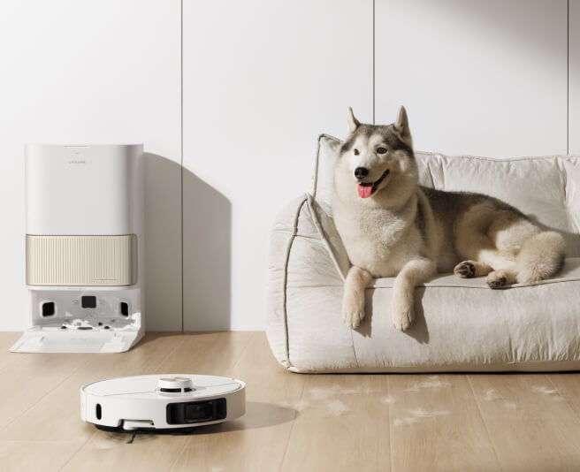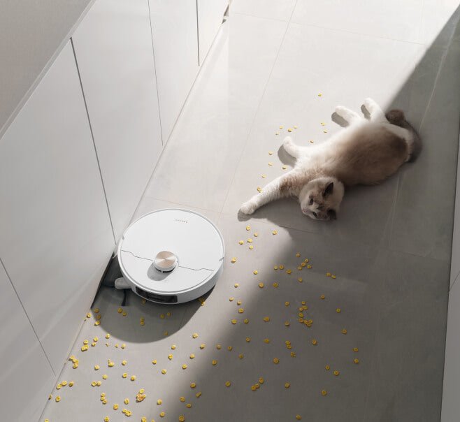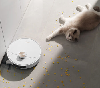 Attiva la modalità per la cura degli animali domestici per ricevere consigli immediati sulla pulizia e impostare delle zone da evitare riservate agli animali* nell'app Dreamehome. L40 Ultra elimina rapidamente lettiera per gatti e detriti di grandi dimensioni grazie alla tecnologia di aspirazione potenziata per le particelle grandi**. Rimani in contatto con i tuoi animali domestici tramite il controllo vocale in tempo reale e il monitoraggio video quando sei fuori casa.