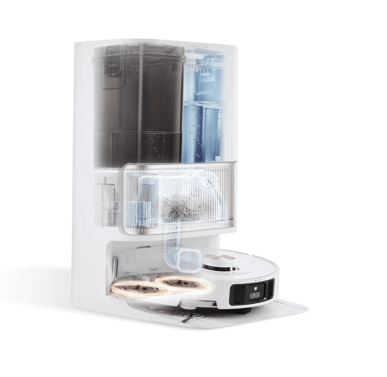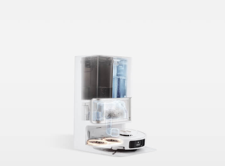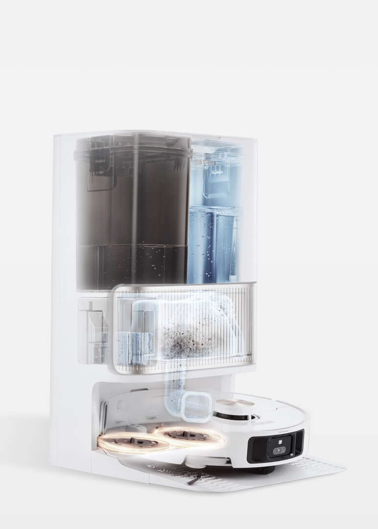 Dotato di una telecamera intelligente e una luce strutturata 3D, L40 Ultra rileva ed evita fino a 100 tipi di oggetti*, inclusi cavi e scarpe. Grazie alla luce a LED integrata, l'aspirapolvere raggiunge anche le aree scarsamente illuminate.