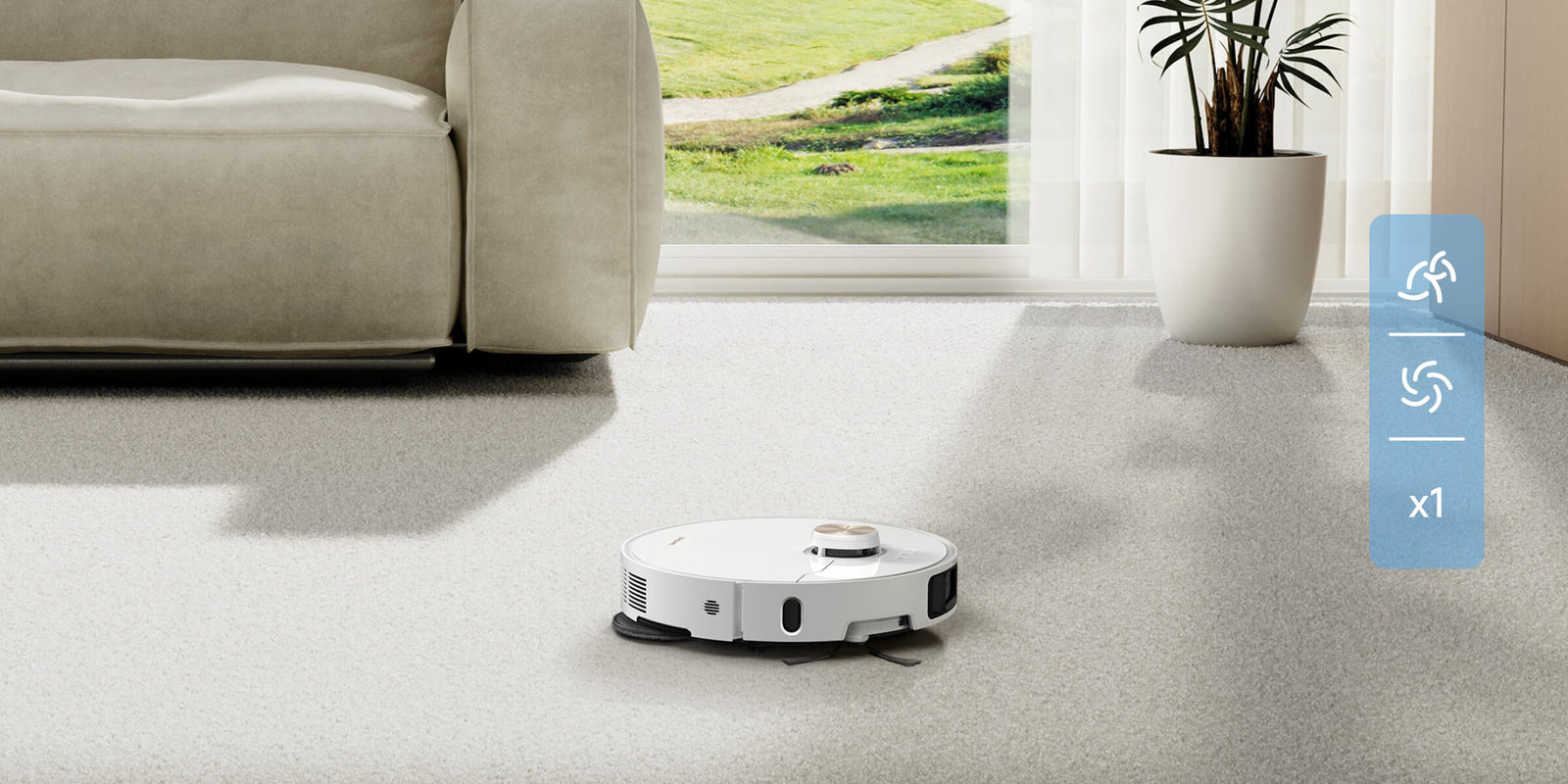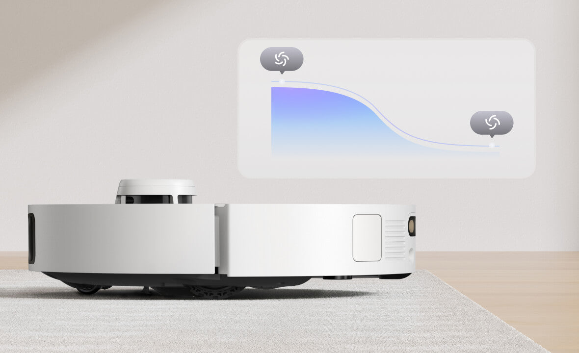 *Aspirazione potenziata: questa modalità è disponibile nell'app Dreamehome. Se rileva la presenza di tappeti o moquette, il robot aspirapolvere li pulisce aumentando al massimo la potenza di aspirazione. Non disponibile nella modalità di aspirazione silenziosa.