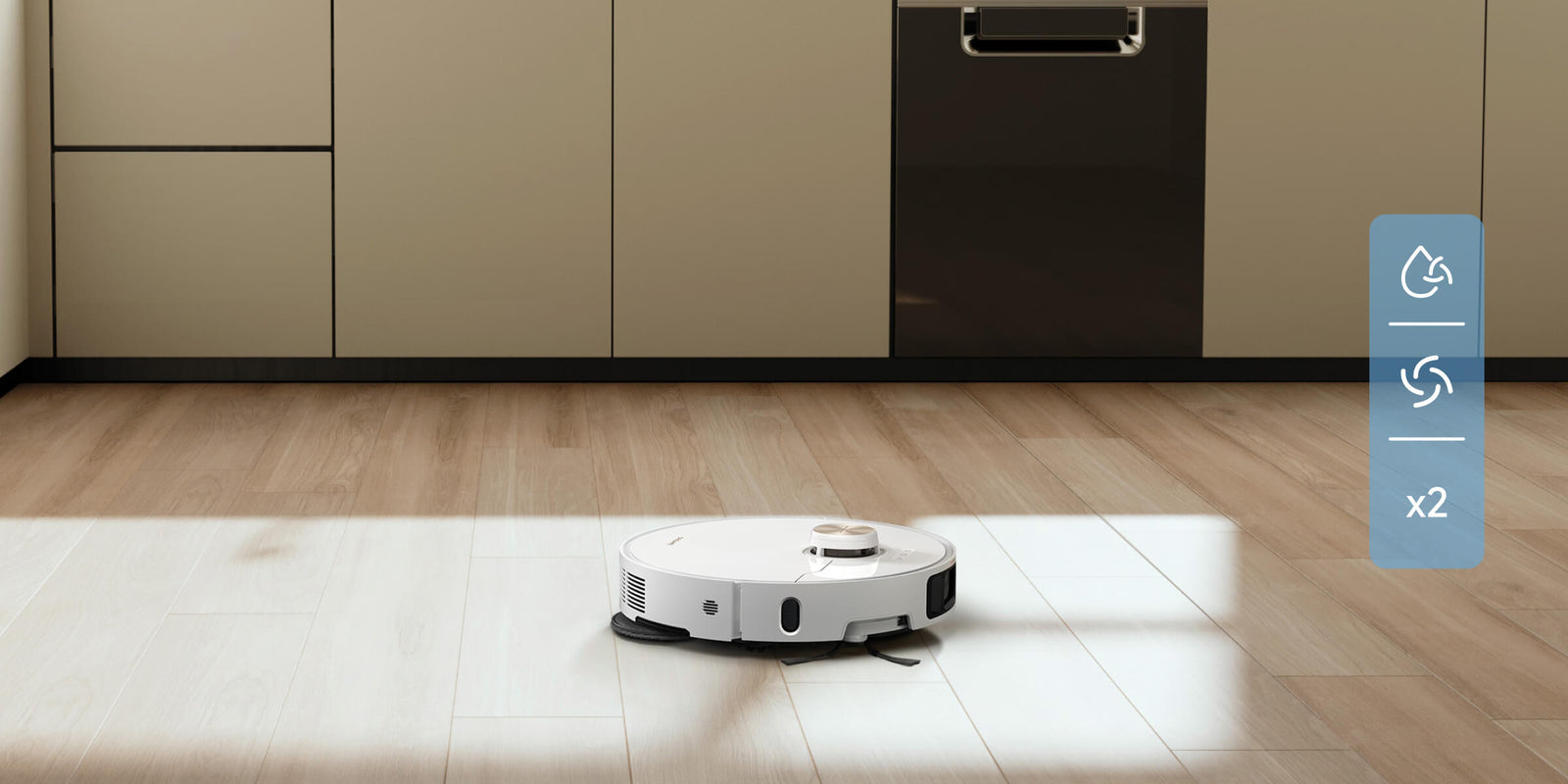 Elimina gli aloni con il rilavaggio di moci e pavimento. Personalizza la pulizia con 32 livelli di umidità nell'app Dreamehome.