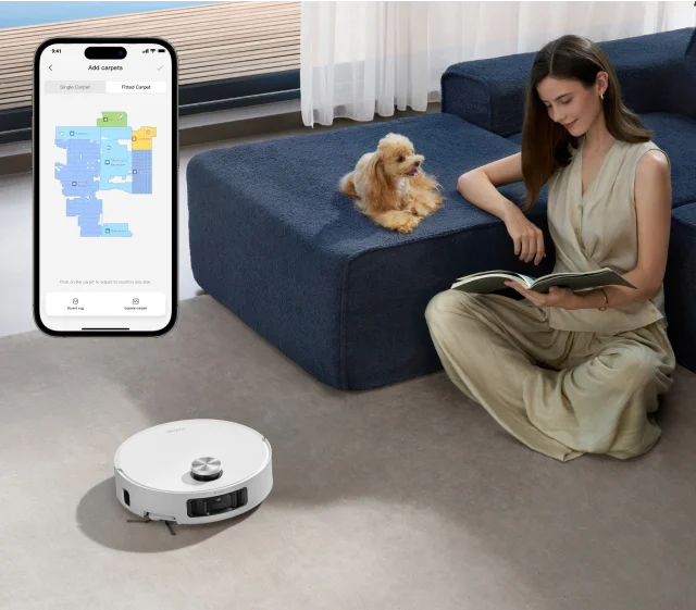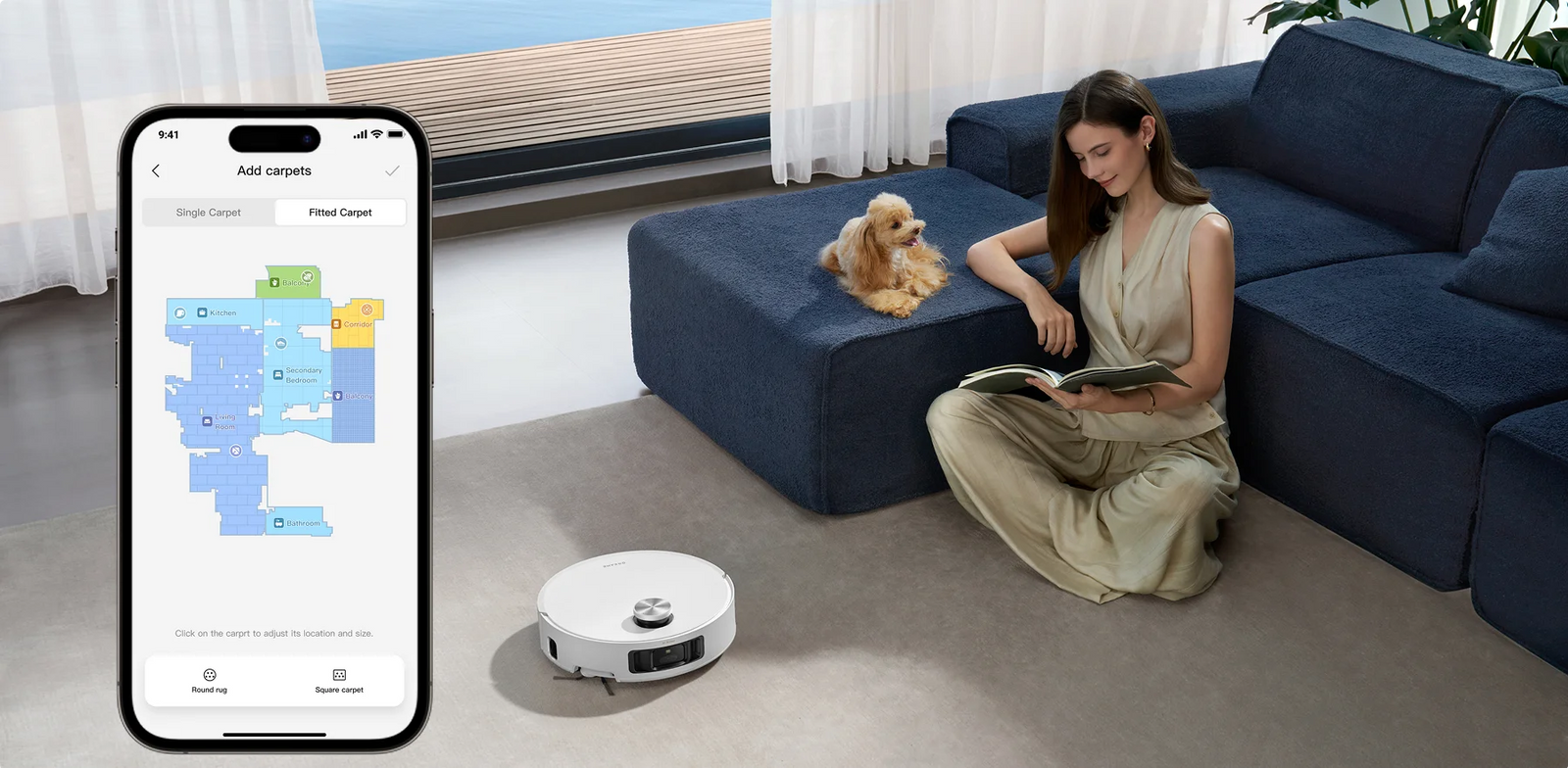 Aggiungi tutte le aree della casa con tappeti e moquette tramite l'app per fare in modo che il robot aspirapolvere le identifichi facilmente.Anche i tappeti di forma irregolare possono essere ruotati a qualsiasi angolazione per un riconoscimento più semplice.