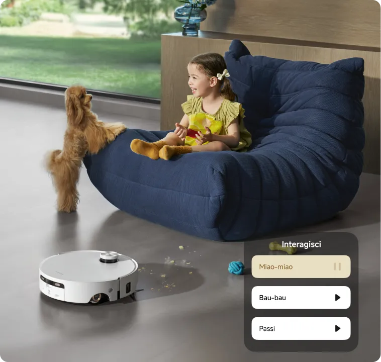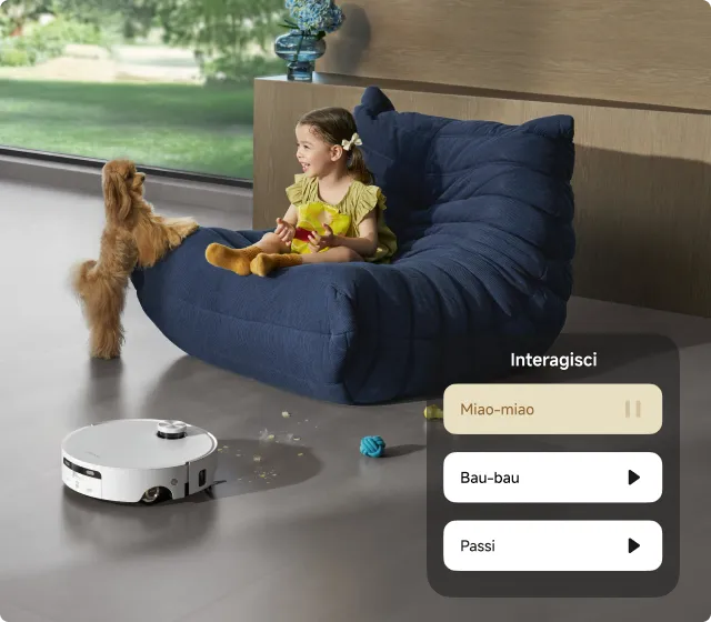 Tieni sotto controllo e interagisci con il tuo animale domestico quando non sei a casa, mentre il robot aspirapolvere mantiene la sua zona sempre pulita.
