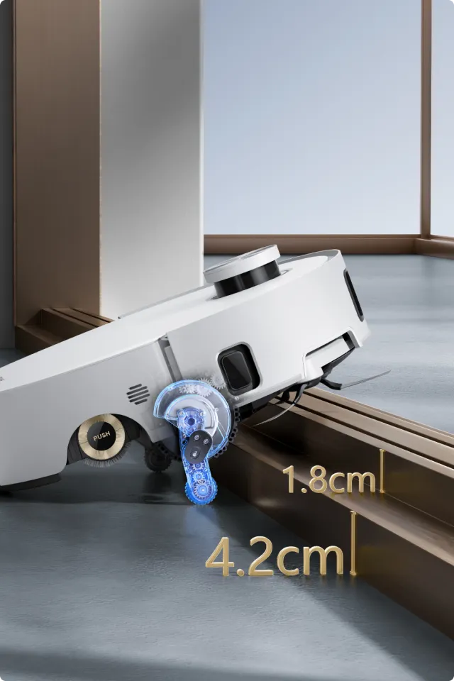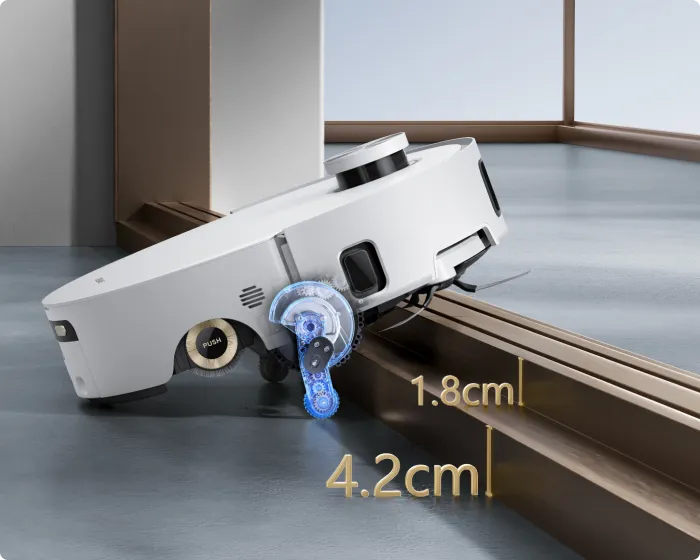 Il sistema ProLeap™ di Aqua10 Roller consente al robot aspirapolvere di superare senza sforzo soglie, guide delle porte, mobili a forma di U e gradini fino a 6 cm*.