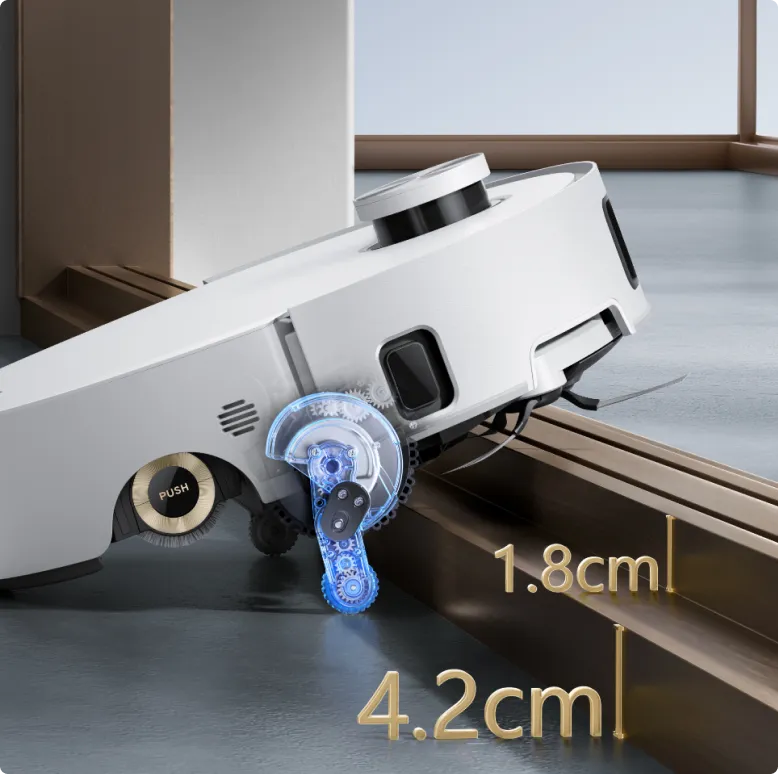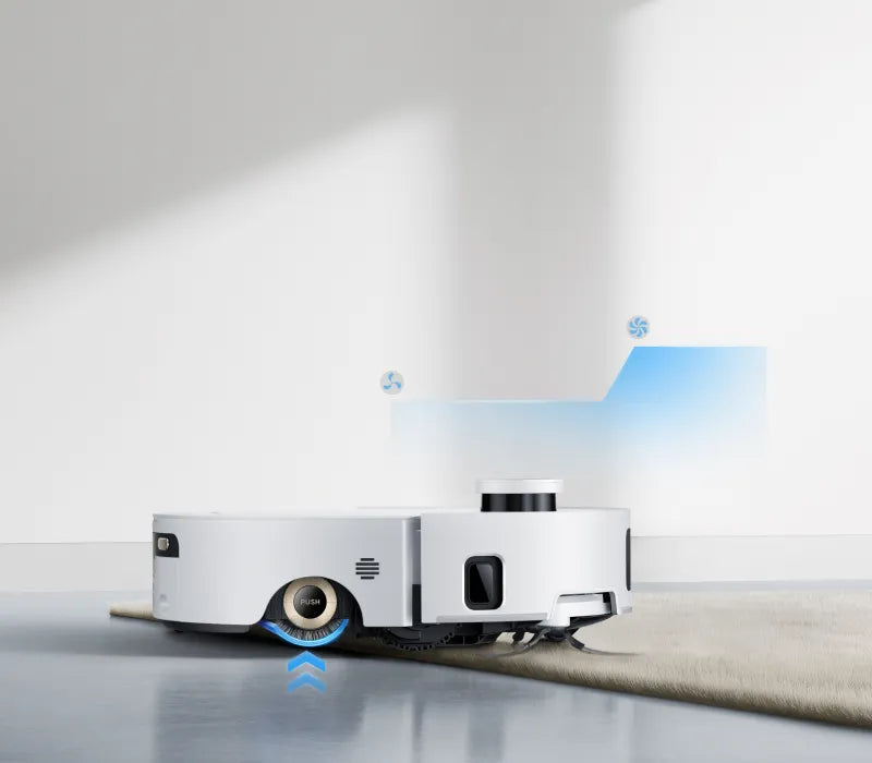 Il panno del robot aspirapolvere si solleva per passare rapidamente sui tappeti e procedere alla pulizia di altre aree e stanze tramite la modalità di attraversamento dei tappeti.