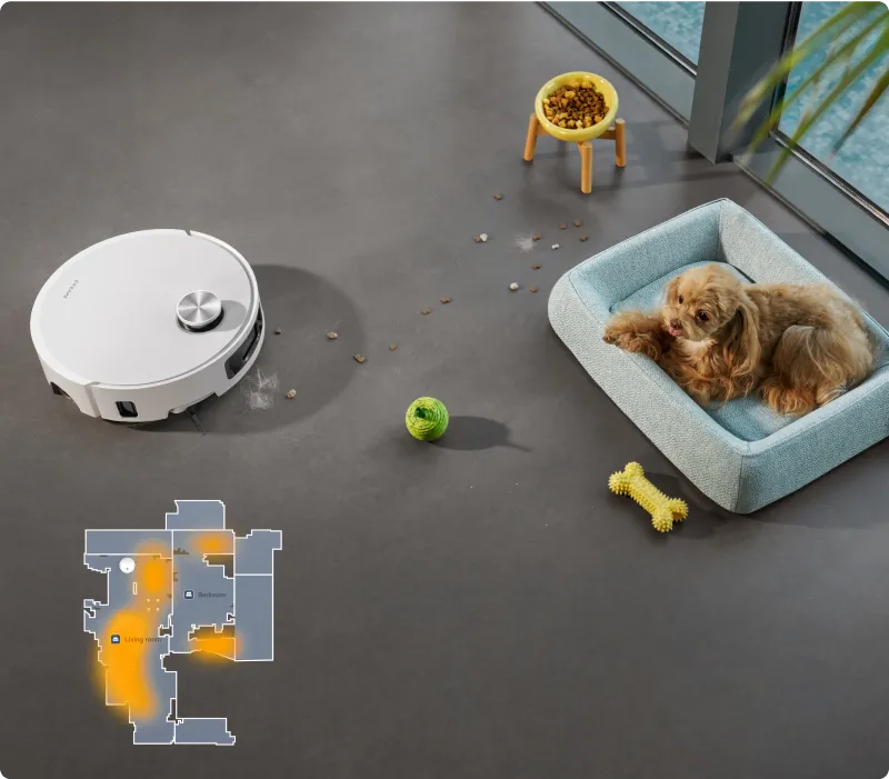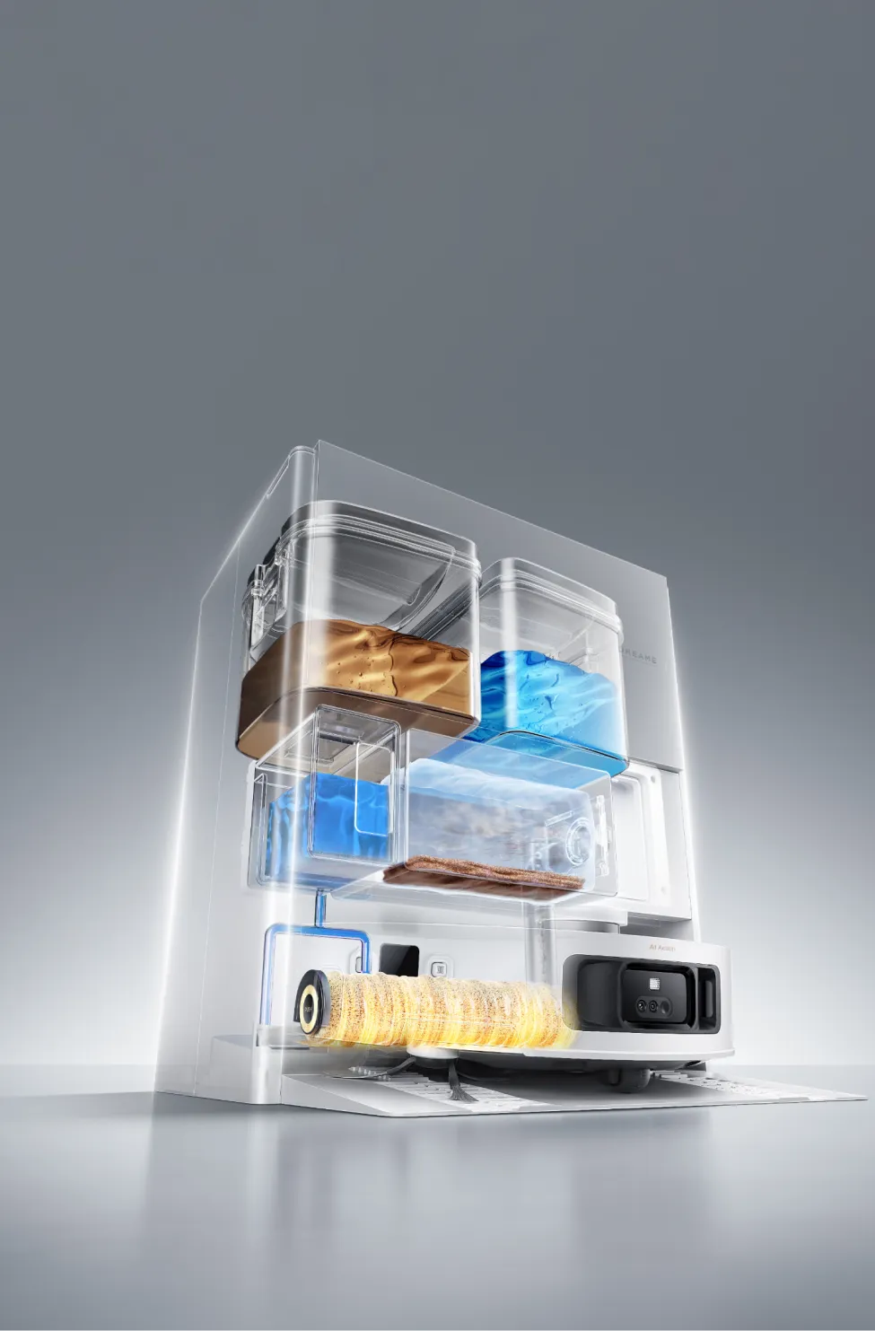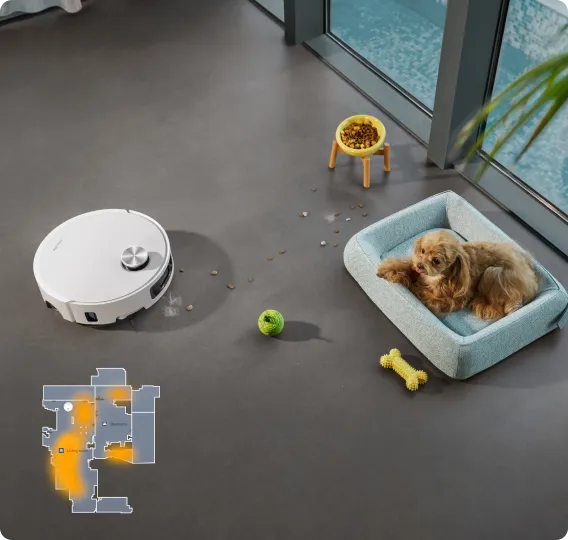 Rileva con precisione gli ostacoli, identifica oltre 240 oggetti e individua lo sporco in aree scarsamente illuminate, per una pulizia più sicura e accurata, tramite luce strutturata 3D, luce a LED e Action camera con IA.