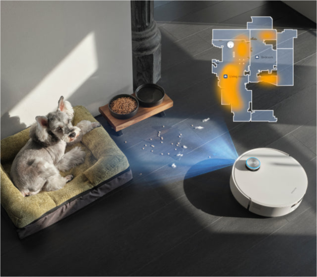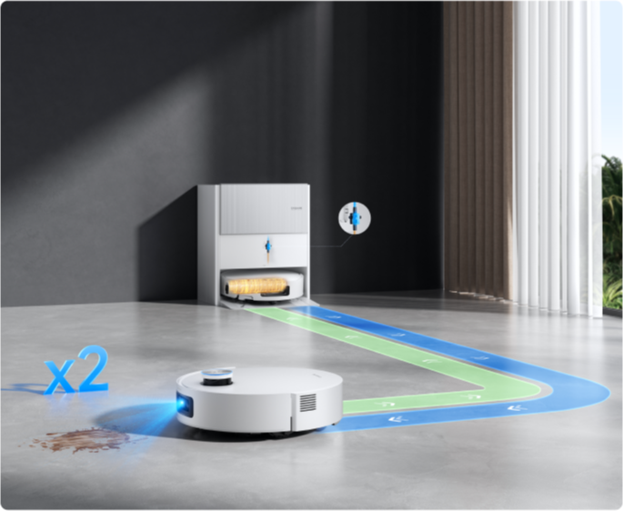 Analogamente al modo in cui l'occhio umano percepisce l'ambiente, le due telecamere con IA ad alta definizione acquisiscono le informazioni sulla profondità e creano i dettagli 3D, evitando facilmente oltre 240* oggetti, con un livello di precisione fino a 1 mm*.