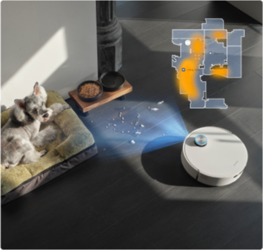 *Aumento della potenza per tappeti/moquette: questa modalità è disponibile nell'app di pulizia. Se rileva la presenza di tappeti o moquette, il robot aspirapolvere aumenta al massimo la potenza di aspirazione. Non disponibile nella modalità di aspirazione Silenziosa.
