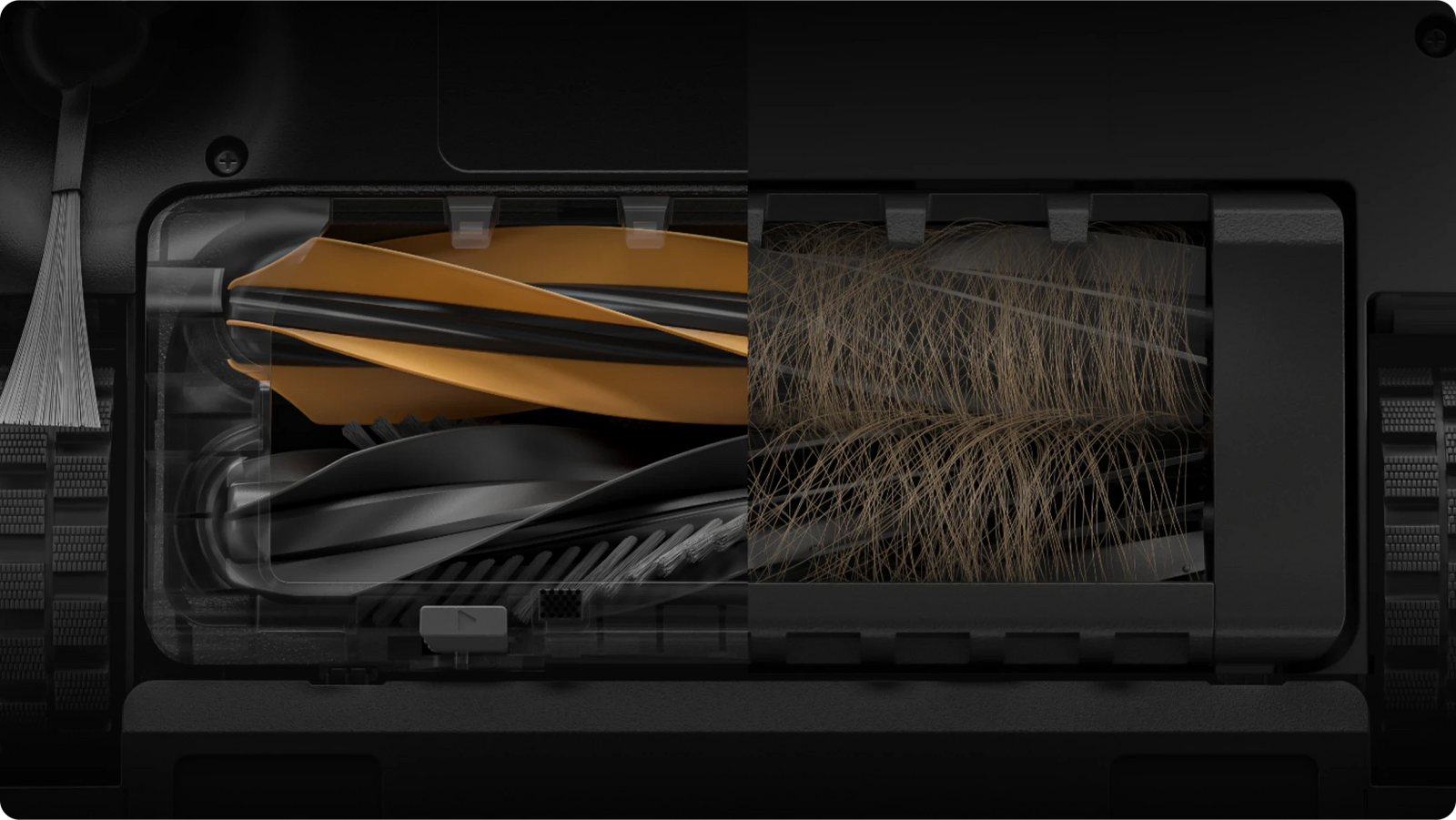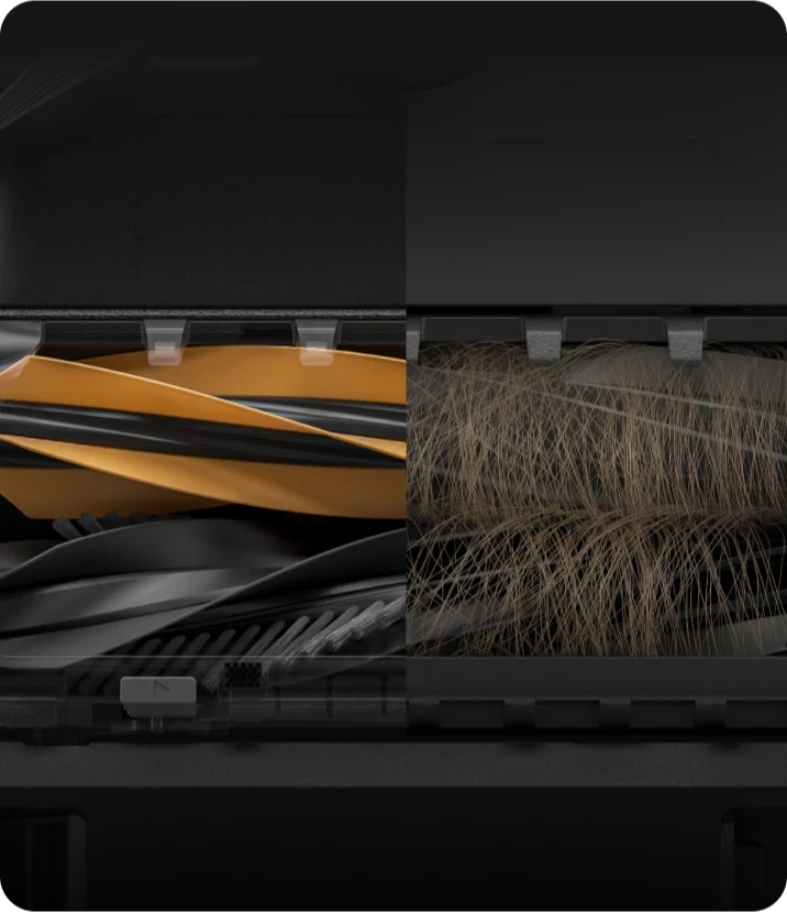 Con 2 spazzole diverse, l'uso del flusso d'aria e una struttura ingegnosa, la doppia spazzola antigroviglio HyperStream™ solleva facilmente i detriti da tappeti e moquette e dalle fughe dei pavimenti, aspirando ogni singola ciocca per evitare grovigli.