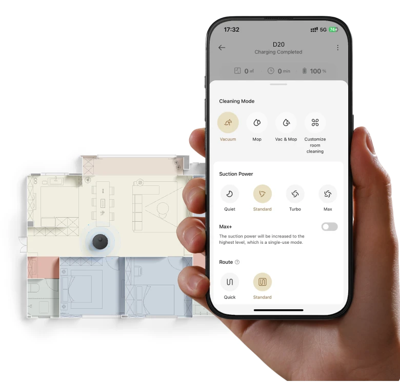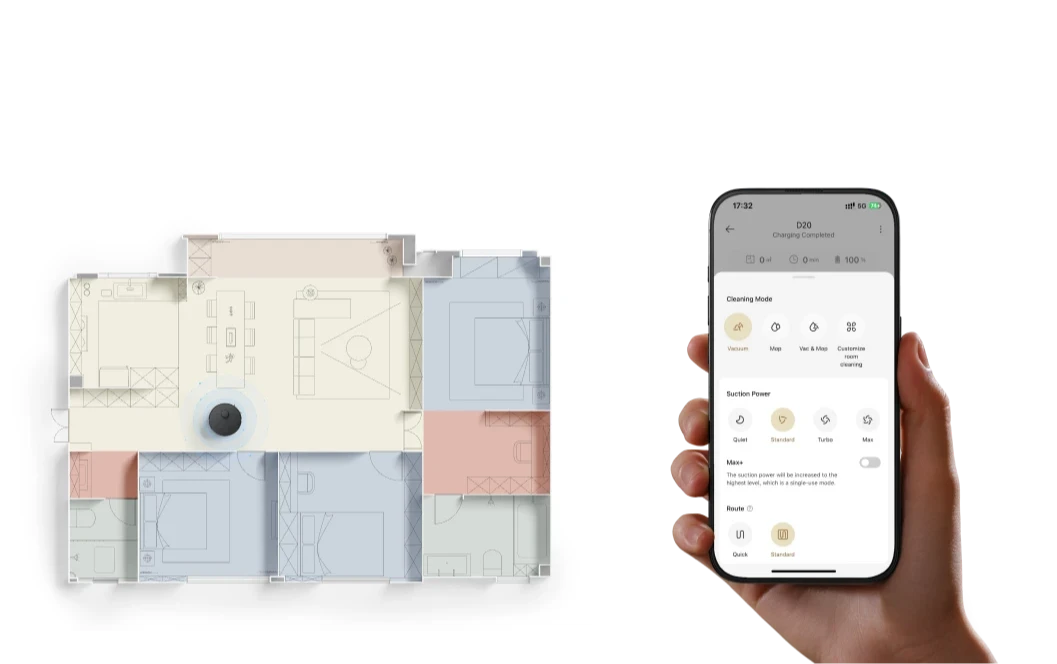 Migliora la pulizia con l'app Dreamehome, che ti permette di personalizzare ogni stanza in base alle tue esigenze.