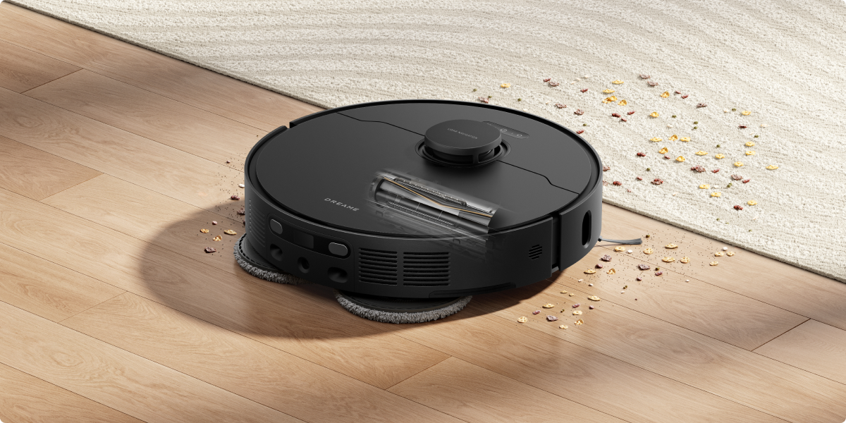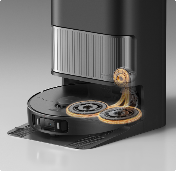 L'aspirazione potenziata pulisce i tappeti a pelo corto mantenendoli asciutti. I panni per mocio si sollevano automaticamente fino a 10,5 mm*, per evitare d'inumidire i tappeti. Scegli la modalità Aspirazione potenziata nell'app Dreamehome per raccogliere i residui rimasti nei tappeti e pulirli in modo efficace con risultati impeccabili.