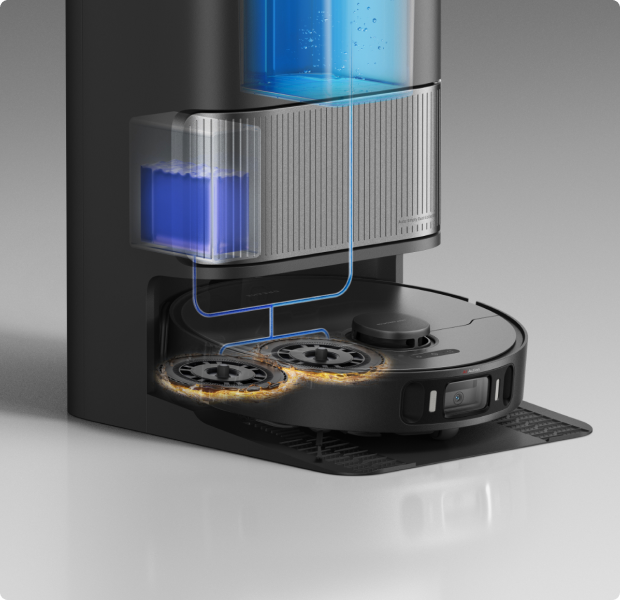 Goditi un aggiornamento versatile per una casa più pulita. Con una potente aspirazione da 19.000 Pa*, una spazzola principale in gomma sollevabile e una spazzola TriCut complementare, il robot aspirapolvere rimuove minuscole particelle di polvere e detriti più grandi da tappeti e pavimenti e riduce i grovigli di capelli. Il lavaggio automatico con acqua calda a 75 °C* e il vassoio di lavaggio autopulente avanzato semplificano al massimo la manutenzione post-pulizia.