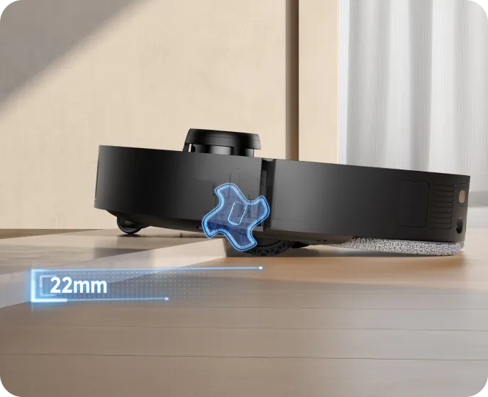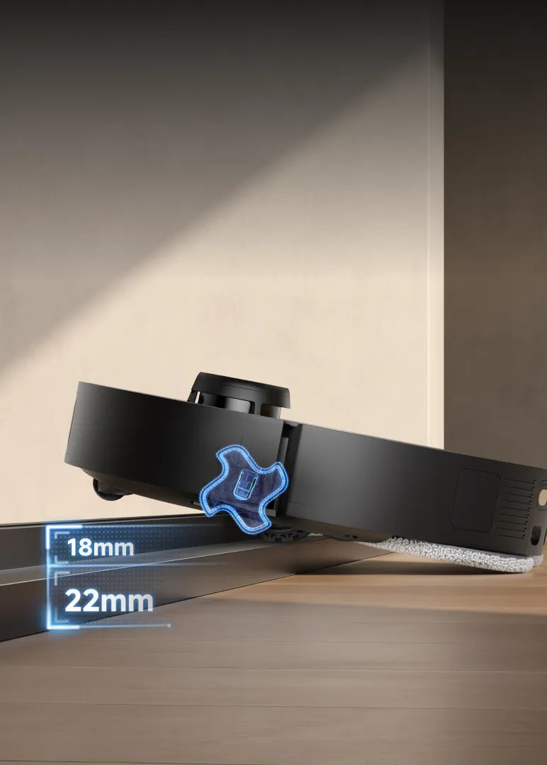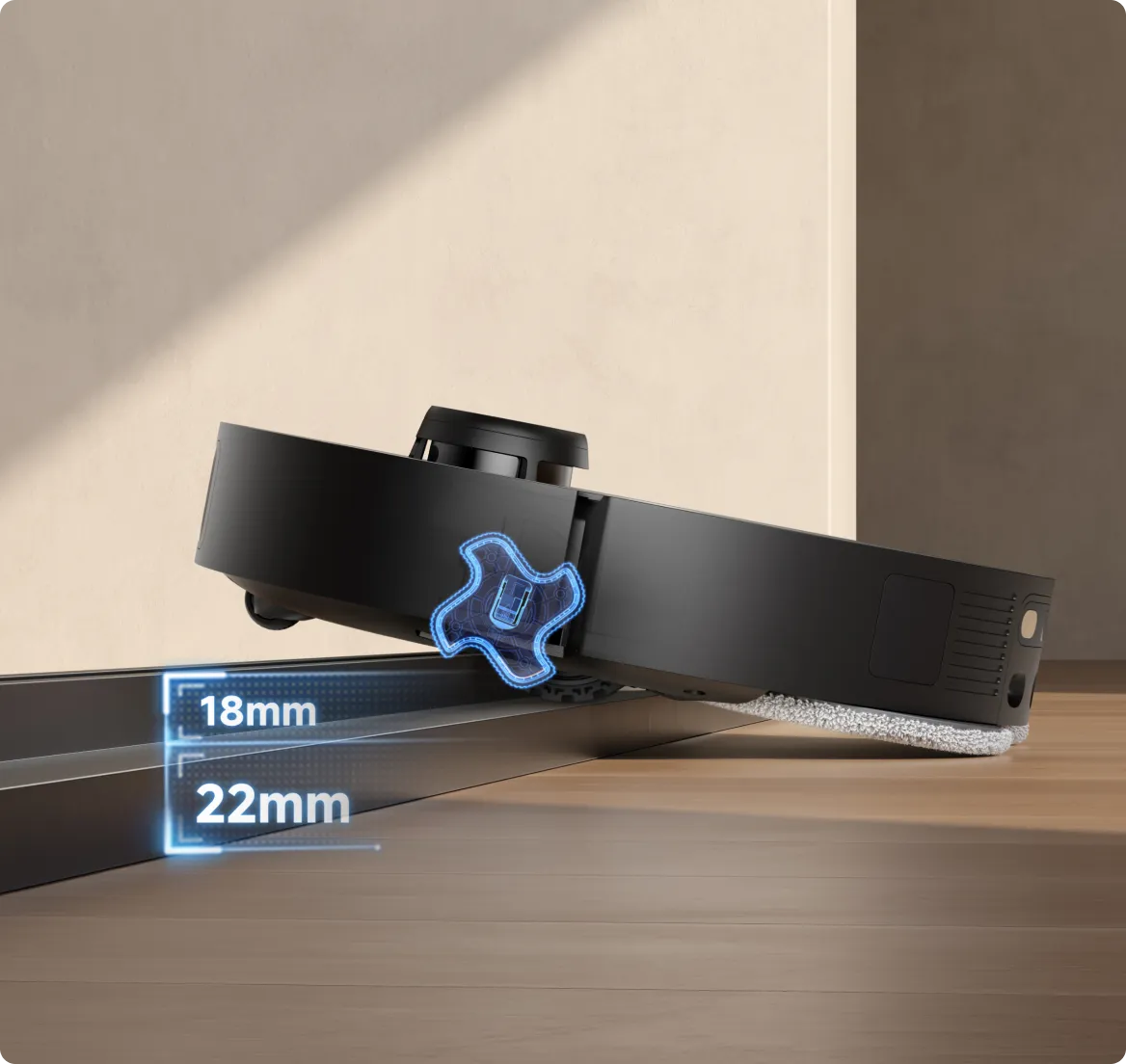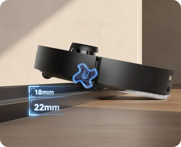 Il sistema EasyLeap™ è dotato di 4 ruote che consentono al robot aspirapolvere di superare gradini e guide delle porte per un'altezza massima di 40 mm*. Il suo design è efficace anche su pavimenti umidi, superfici della cucina scivolose o guide delle porte scorrevoli.