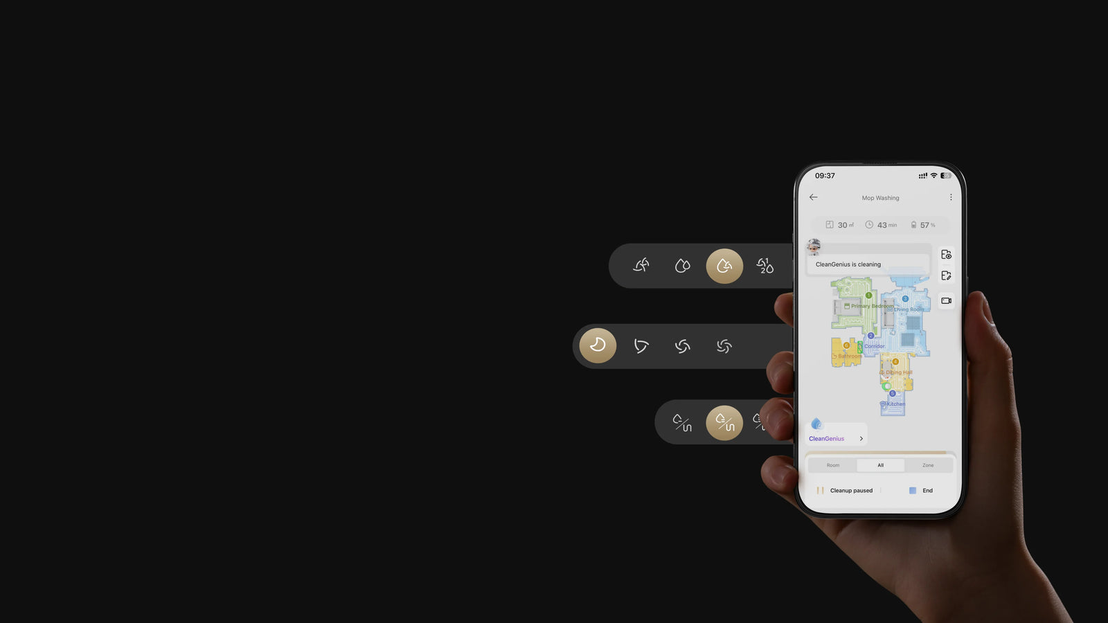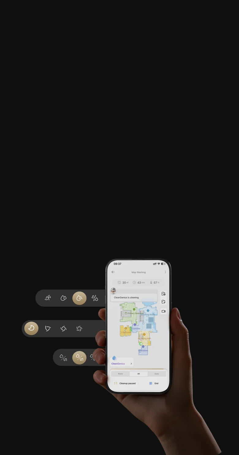 *Le funzioni di rilavaggio dei moci e dei pavimenti sono disponibili quando l'utente le imposta in modalità CleanGenius™ nell'app Dreamehome.