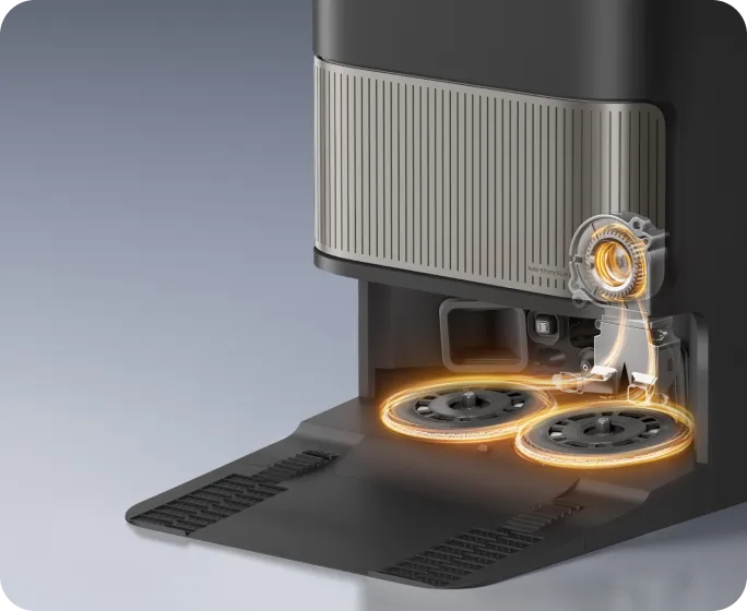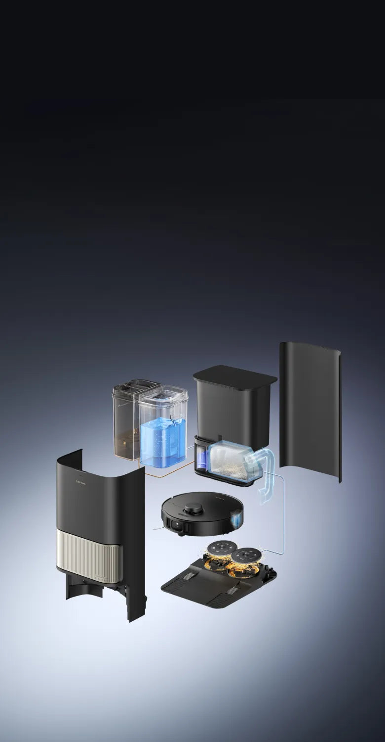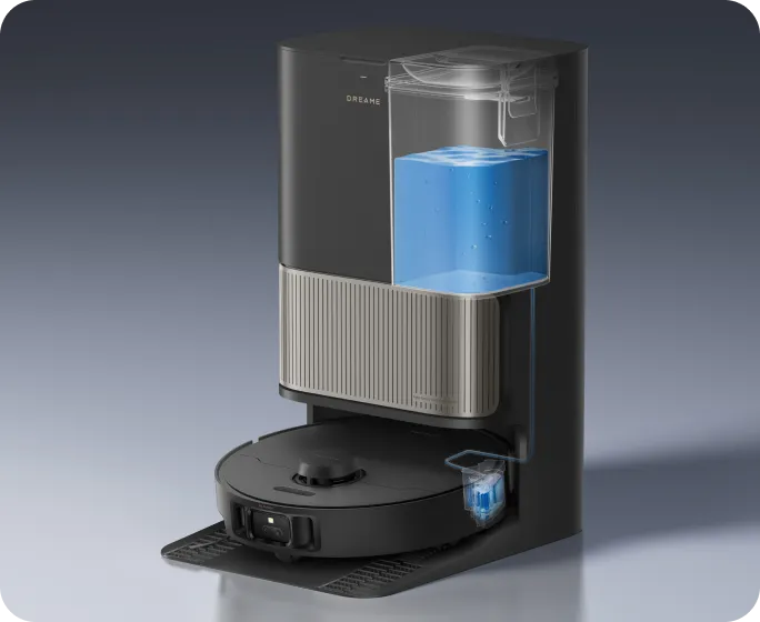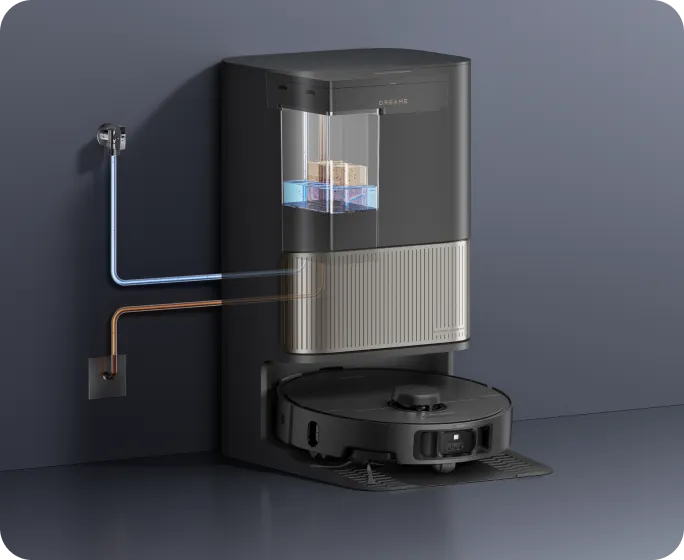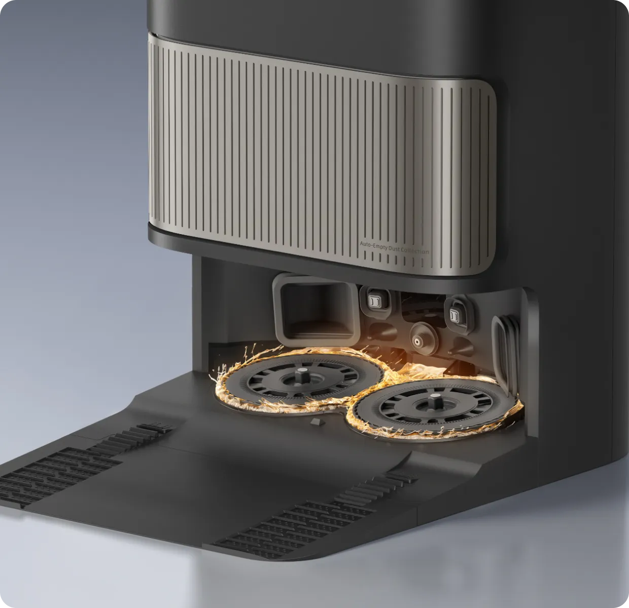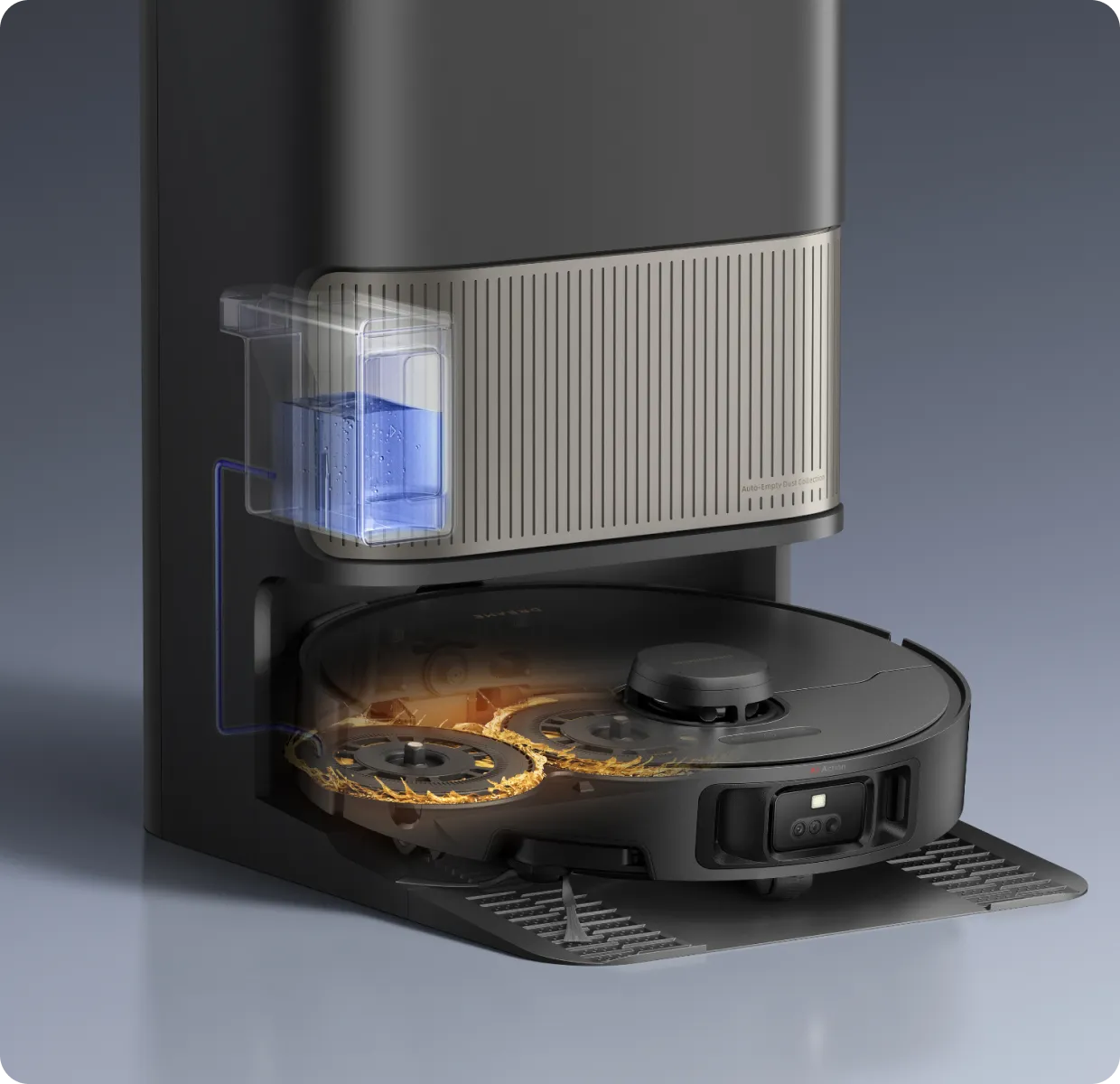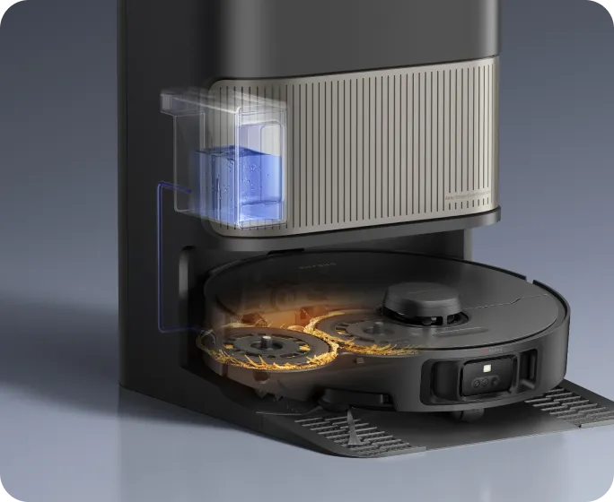 Dopo il lavaggio, la stazione utilizza il sensore di colore per valutare la sporcizia dei residui di acqua. Se lo sporco è eccessivo, il robot aspirapolvere laverà nuovamente i panni per mocio prima del secondo ciclo di pulizia e si assicurerà che i pavimenti siano sempre lavati con moci puliti.