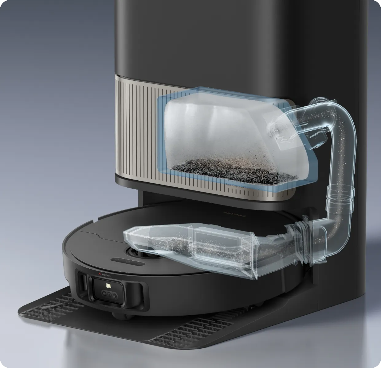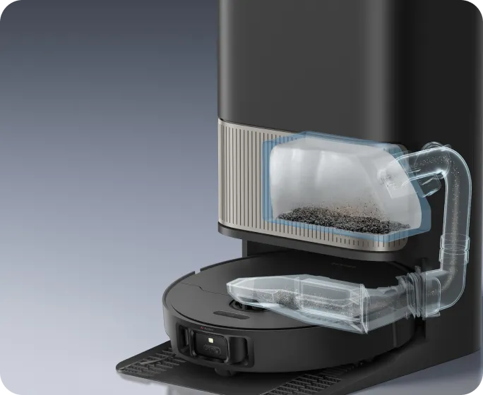 Al primo utilizzo, il sistema consiglia la funzione di pulizia a fondo iniziale, che avvia la modalità Lavaggio dopo aspirazione e l'auto-svuotamento ad alta frequenza per contribuire a eliminare completamente la polvere e lo sporco per la tua prima esperienza di pulizia.
