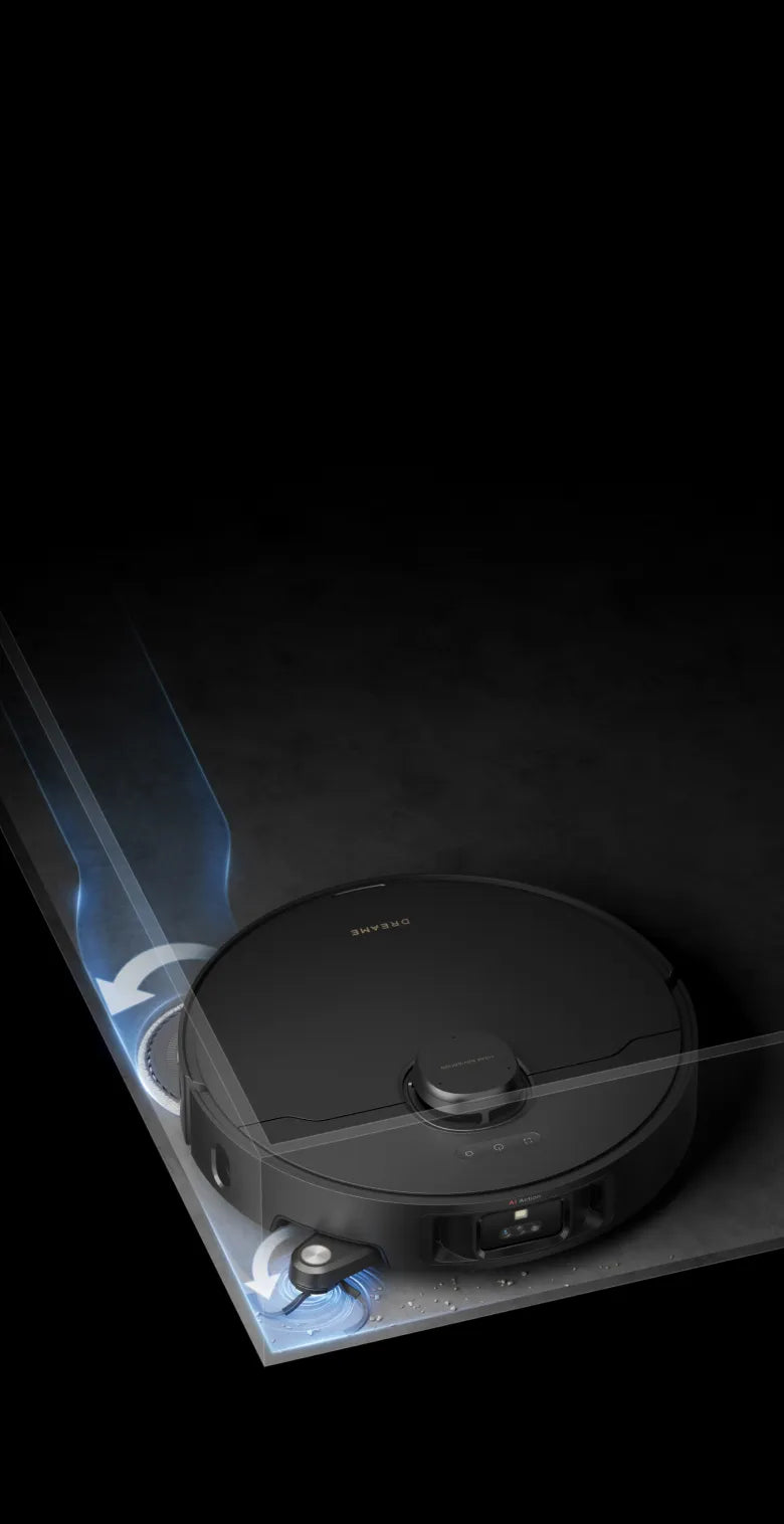 La tecnologia TripleUp consente a L40s Pro Ultra di sollevare e abbassare separatamente la spazzola laterale, la spazzola principale e i panni per mocio per gestire i diversi tipi di sporco.