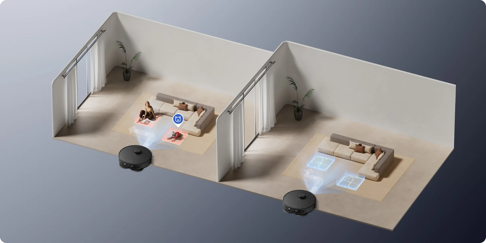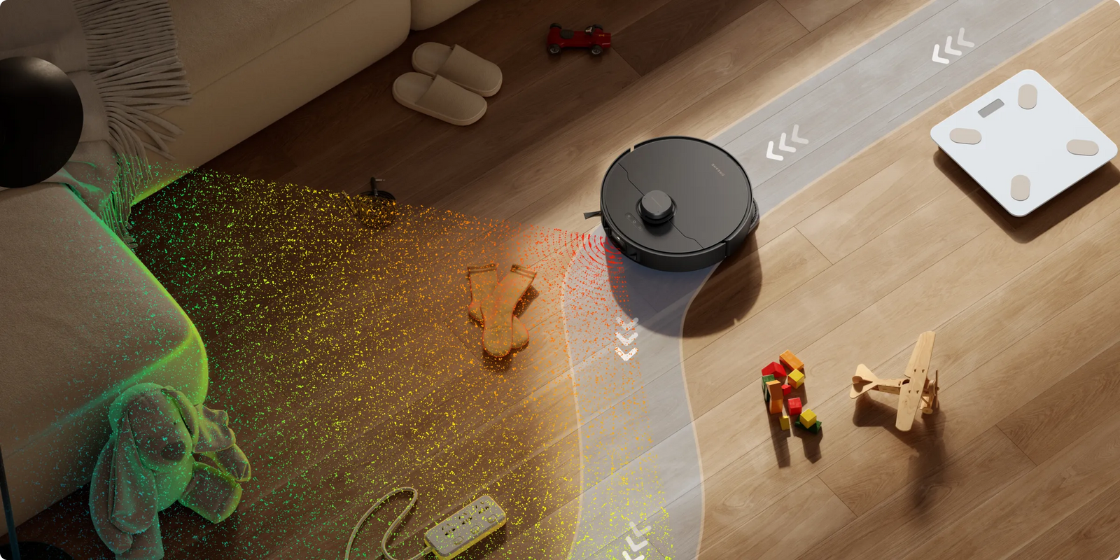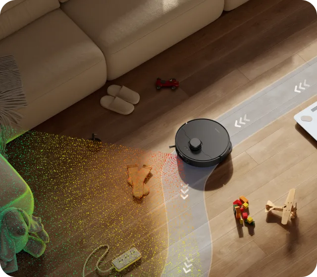 L40s Pro Ultra riconosce ed evita in modo intelligente gli oggetti domestici*. Inoltre, le luci a LED integrate illuminano il percorso del robot aspirapolvere per manovre accurate anche in condizioni di scarsa illuminazione.
