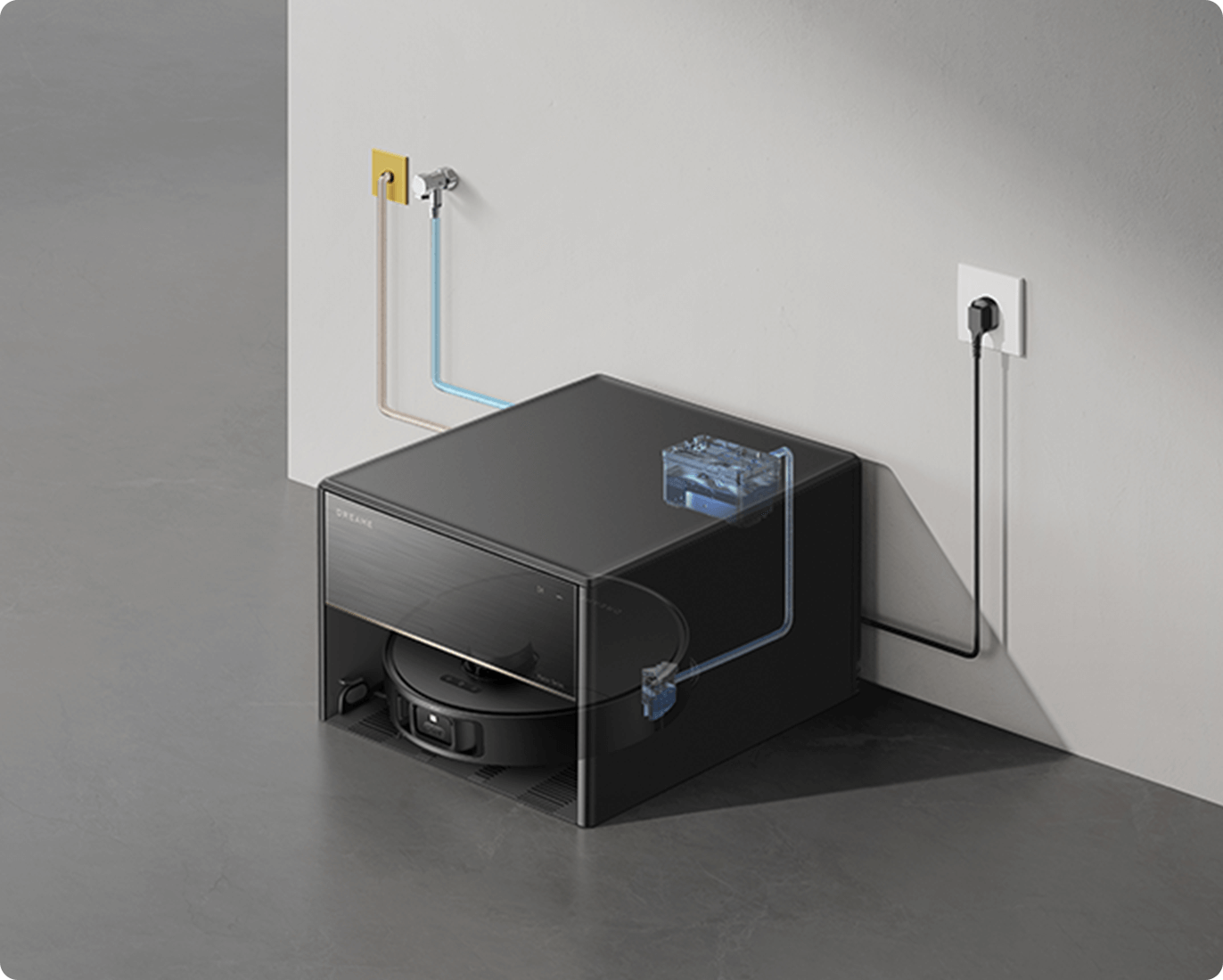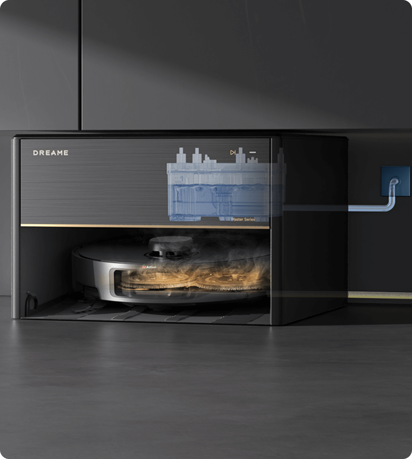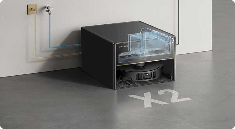 Grazie alle opzioni della modalità Aspirazione e lavaggio nell'app Dreamehome, puoi facilmente impostare il tuo stile di lavaggio preferito, da quasi asciutto a umido fino a bagnato. Dopo il lavaggio, il sensore di colore analizza l'acqua sporca e regola il volume dell'acqua di lavaggio (32 livelli) per le aree molto sporche.