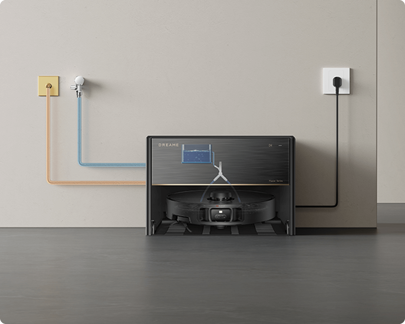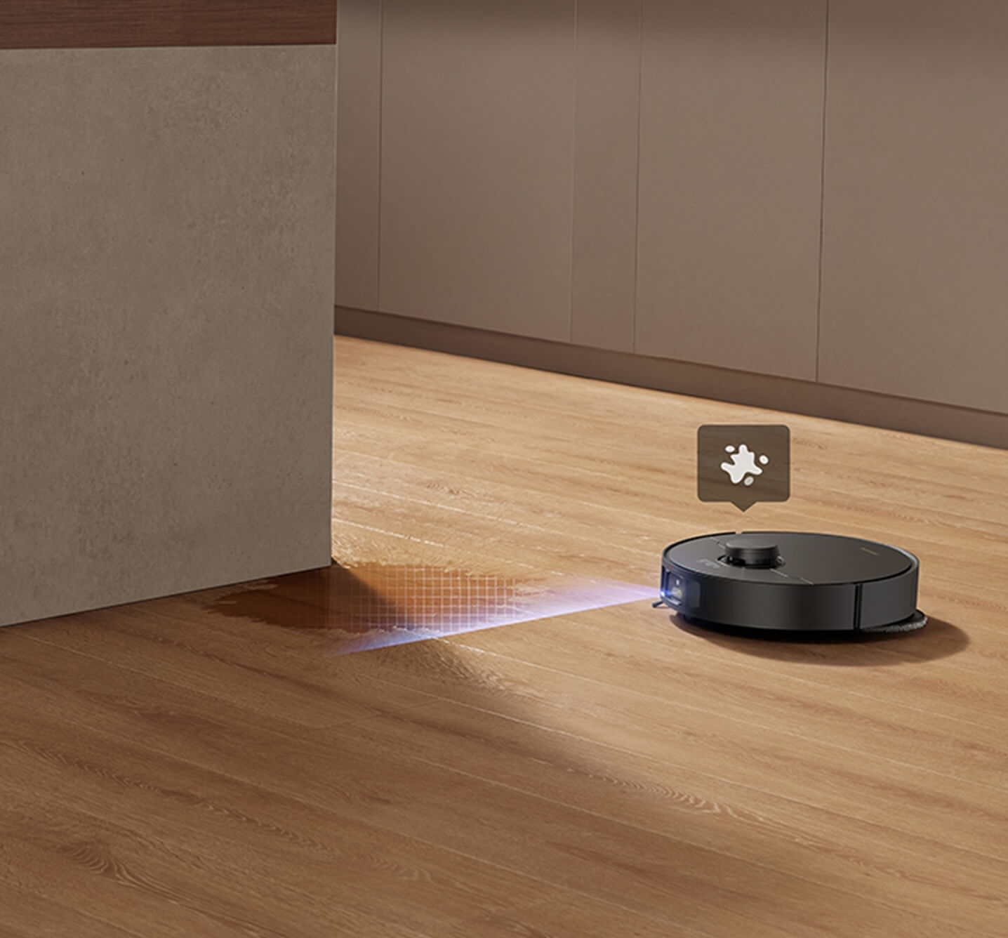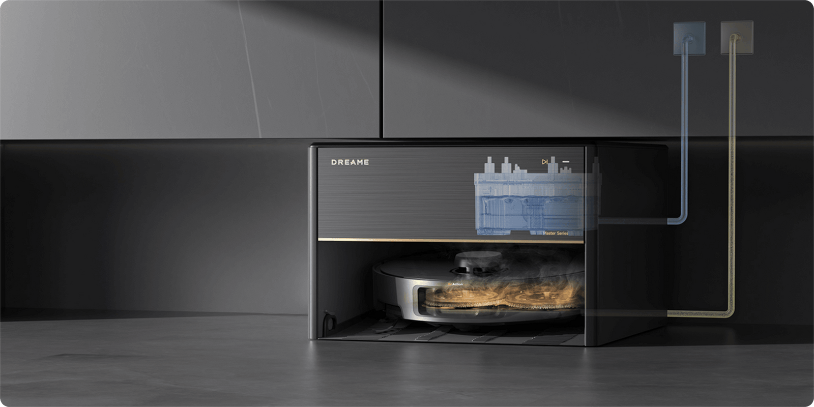 Grazie alle opzioni della modalità Aspirazione e lavaggio nell'app Dreamehome, puoi facilmente impostare il tuo stile di lavaggio preferito, da quasi asciutto a umido fino a bagnato. Dopo il lavaggio, il sensore di colore analizza l'acqua sporca e regola il volume dell'acqua di lavaggio (32 livelli) per le aree molto sporche.