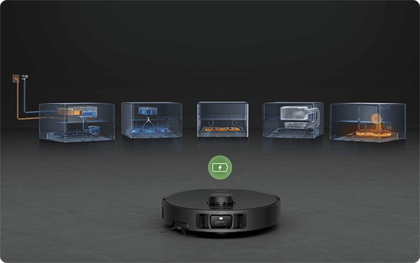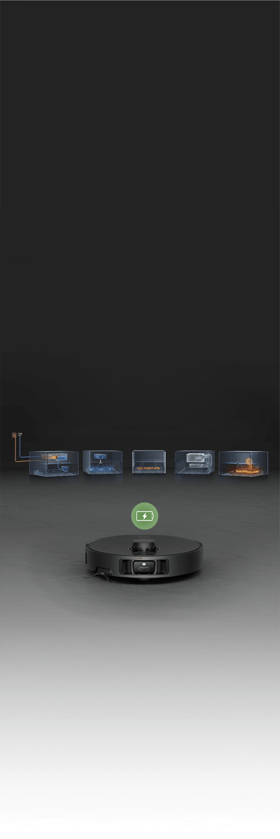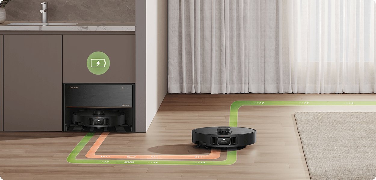 X40 Master dispone di una potente batteria da 6.400 mAh , che offre fino a 198 minuti* di aspirazione e lavaggio dei pavimenti in modalità Standard. Copre fino a 308 m² con una sola ricarica** e quando la batteria è quasi scarica torna automaticamente alla base. A ricarica completata, riprende la pulizia dal punto in cui era stata interrotta.