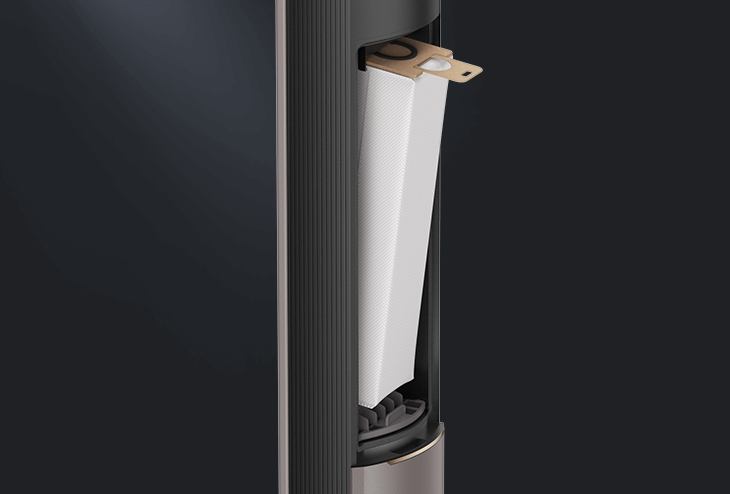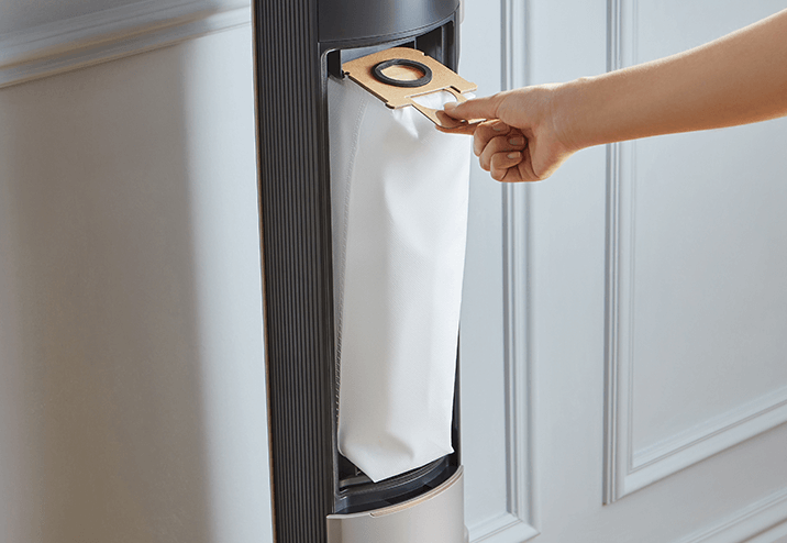 L'hub per la rimozione della polvere utilizza un processo automatico per sollevare tutta la polvere raccolta dall'aspirapolvere e trasferirla nell'apposito sacchetto.